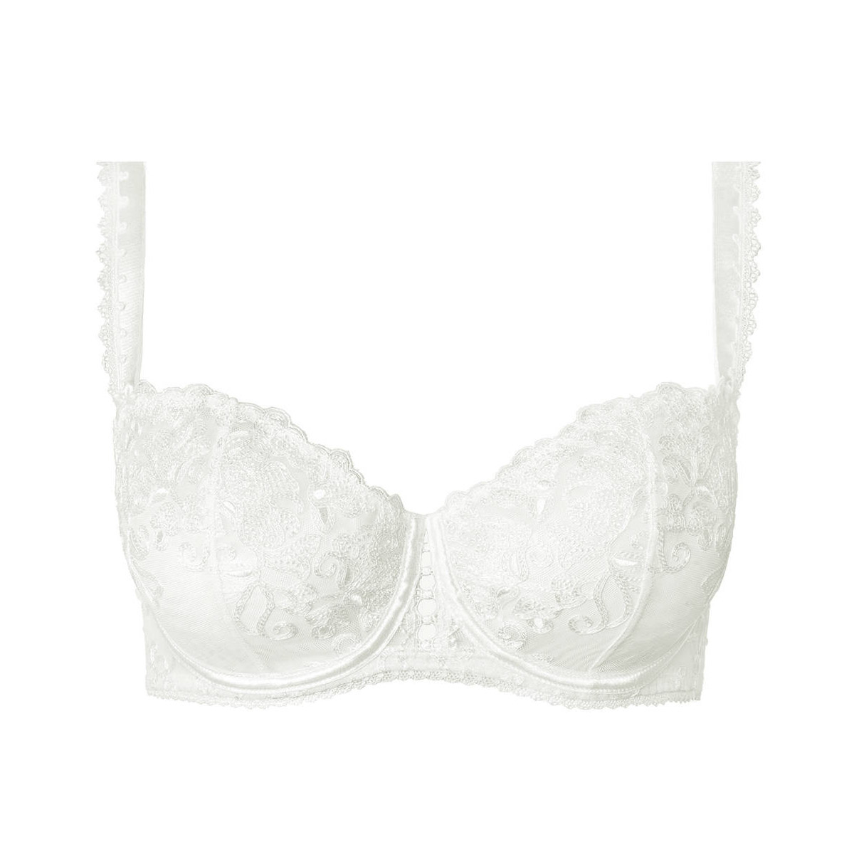 Бюстгальтер-балконет-комфорт, созданный по прототипу известной "анжелики" и предназначенный для большой груди. Бюстгальтер-балконет с мягкой открытой формой чашек на косточках. Чашки выполнены из расшитого цветочным орнаментом тюля, который создает эффект тату на теле и подчеркивает роскошь вышивки. Бретели, центральная панель и нижний край бюстгальтера декорированы. Чашки бюстгальтера, с внутренней стороны дублированы тюлем для придания необходимой поддержки. "Балетная" спинка, регулирующиеся бретели.