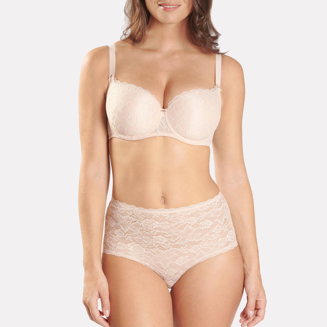 Новая форма от "Aubade" уплотненный балконет. Бюстгальтер с уплотненной мулированной формой чашек. Гарантировано обеспечит необходимую поддержку и придаст Вашей груди еще более округлую форму. Чашки бюстгальтера покрыты "плоским" кружевом с цветочным мотивом. Регулирующиеся бретели с кружевом в форме Эйфелевой башни (на задней панели).