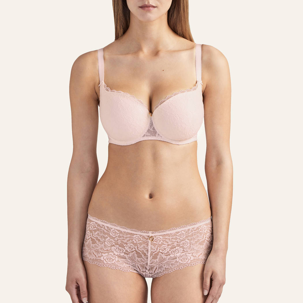 Новая форма от "Aubade" уплотненный балконет. Бюстгальтер с уплотненной мулированной формой чашек. Гарантировано обеспечит необходимую поддержку и придаст Вашей груди еще более округлую форму. Чашки бюстгальтера покрыты "плоским" кружевом с цветочным мотивом. Регулирующиеся бретели с кружевом в форме Эйфелевой башни (на задней панели).