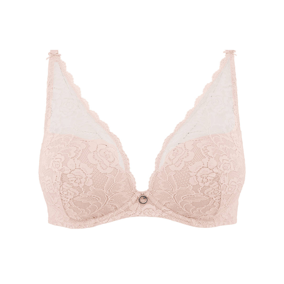 Бюстгальтер - пуш ап с интегрированными подушками на косточках. Чашки покрыты кружевом с цветочным орнаментом. Область декольте дополнена декоративными зубчиками. На центральной панели разместилось маленькое "золотое" колечко со стразой от Сваровски. Регулирующиеся бретели на задней панели декорированы кружевной отделкой, которая символизирует Эйфелевую башню.