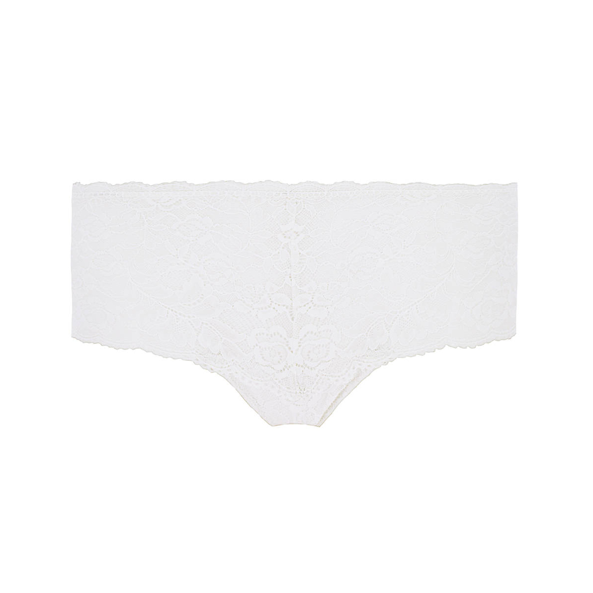 Трусы-боксеры, со средне-заниженной посадкой, полностью выполнены из "плоского" кружева с цветочным мотивом. На задней панели разместилась декоративная деталь с кристаллом от "Swarovski".