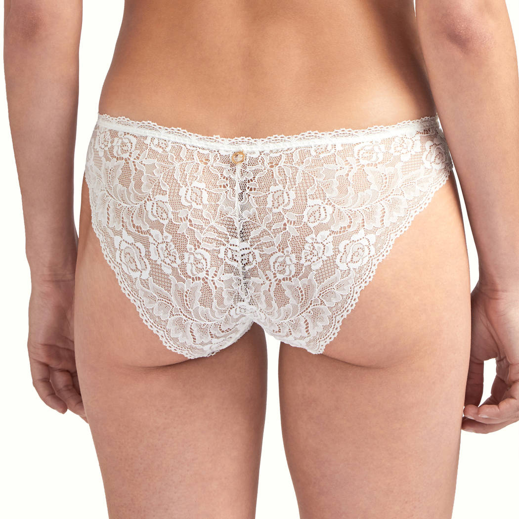 Трусы-классические, со средне-заниженной посадкой, полностью выполнены из "плоского" кружева с цветочным мотивом. На задней панели разместилась декоративная деталь с кристаллом от "Swarovski".