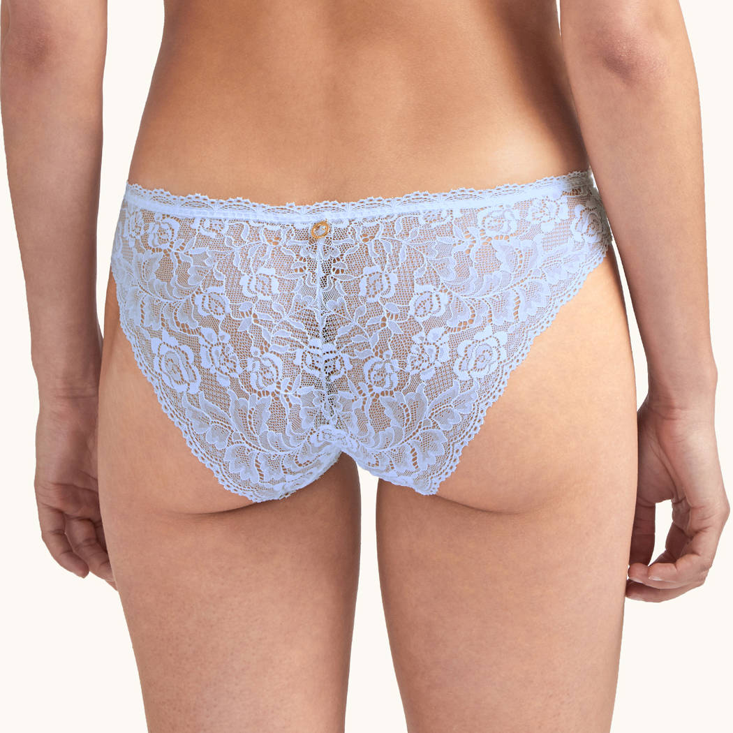 Трусы-классические, со средне-заниженной посадкой, полностью выполнены из "плоского" кружева с цветочным мотивом. На задней панели разместилась декоративная деталь с кристаллом от "Swarovski".