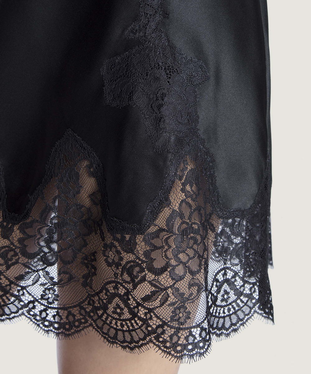 Коллекция-фаворит представлена в обновленной интерпретации: еще больше кружева, еще больше изысканности. Нежная и чувственная коллекция домашней одежды из 100% шелка. Приятная игра контрастного сочетания фактуры и цвета.
