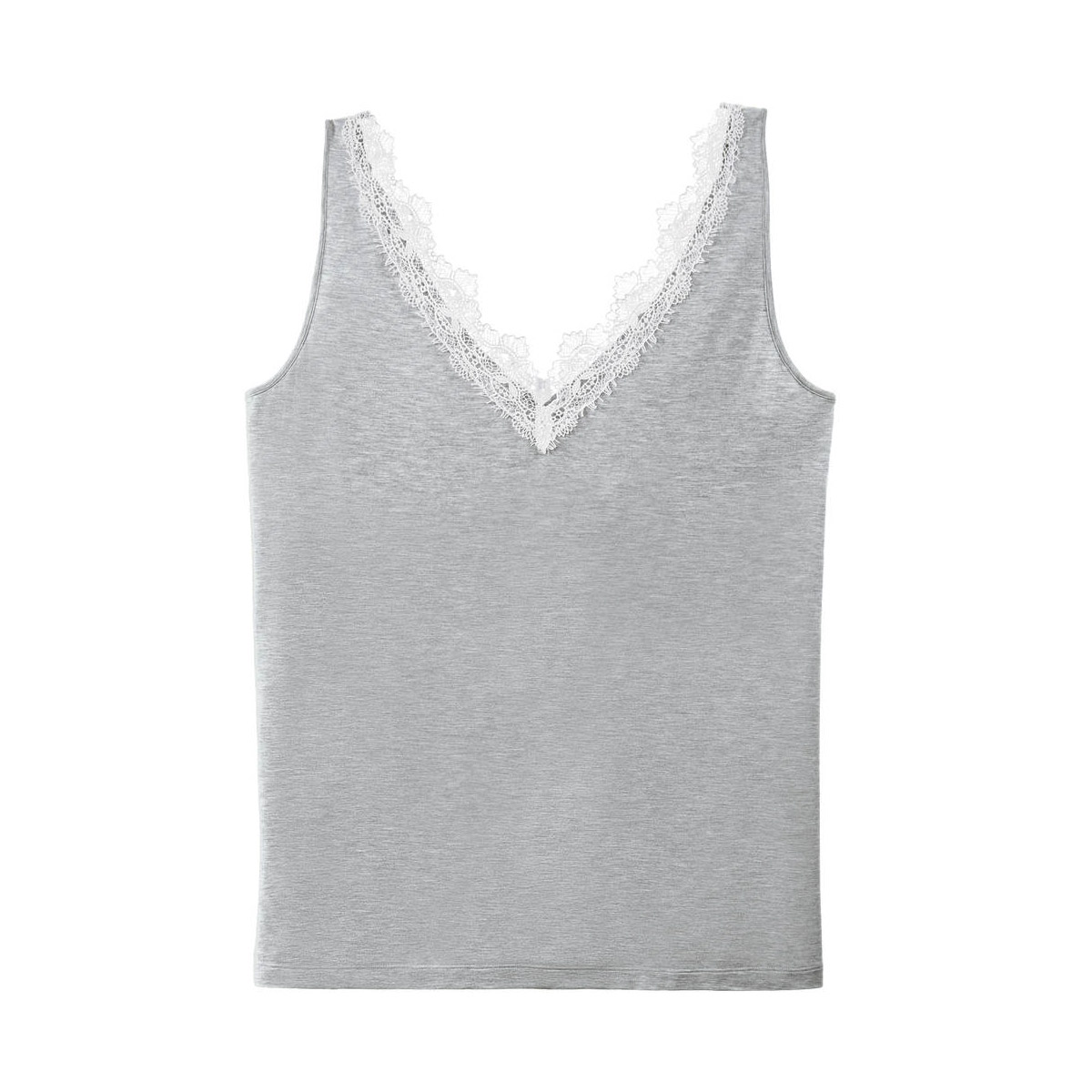 Топ свободного кроя без рукавов с V-образным вырезом,выполнен из мягкого "струящегося" модаля. Область декольте дополнена кружевом. На задней панели - также V-образный вырез, дополненный кружевом.