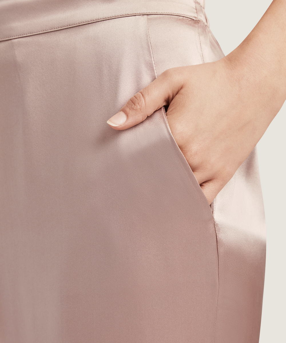 Брюки свободного кроя с боковыми карманами. Пояс: плоский и не эластичный спереди, присобран и эластичен - на задней панели - благодаря вставленной внутрь резинке.