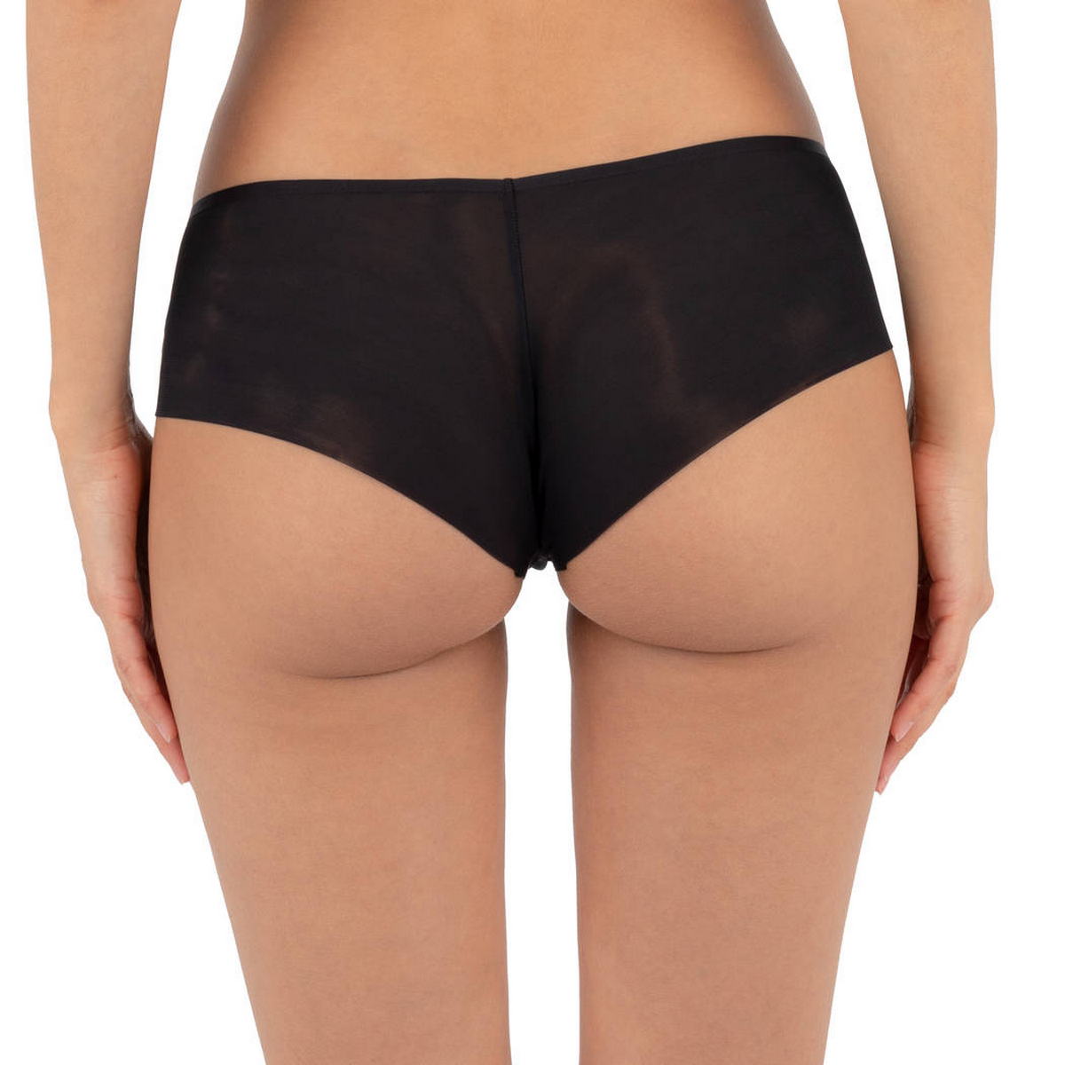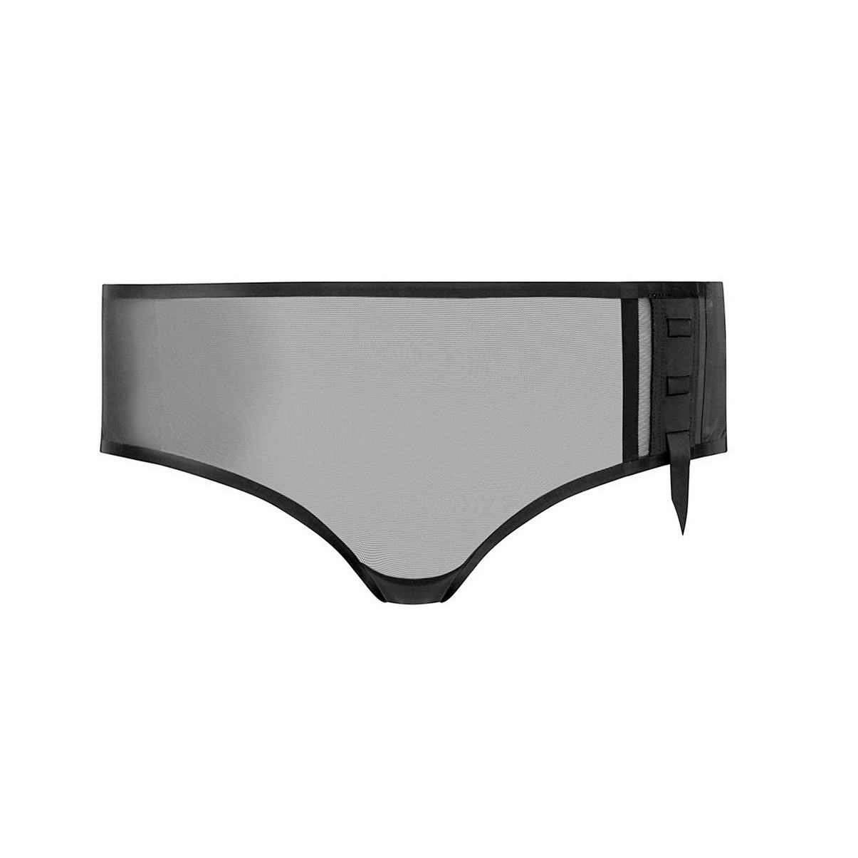 Трусы - боксеры со средне-заниженной посадкой полностью выполнены из прозрачного тюля. Передняя панель ассиметрично декорирована. На задней панели нижние края бесшовные.