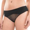 Трусы - стринги со средне-заниженной посадкой. Полностью выполнены из эластичного тюля. Задняя панель - бесшовная; дополнена вырезом с бантом.
