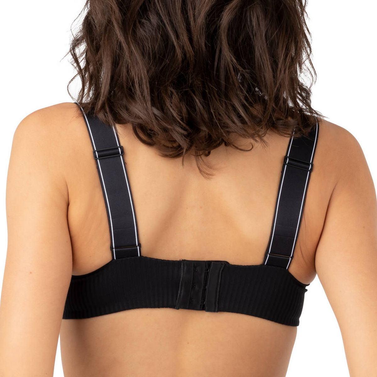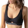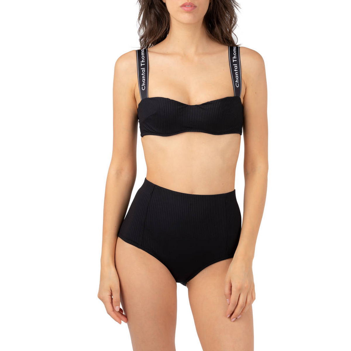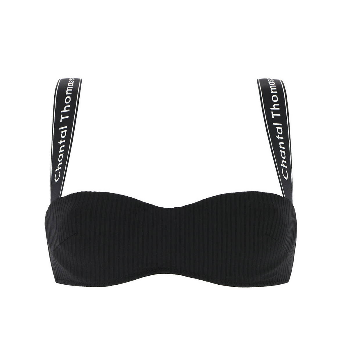 Бюстгальтер - бандо с мягкой открытой формой чашек со скрытыми косточками. Чашки выполнены из ткани в рубчик, с внутренней стороны дублированы. Бретели выполены из эластичной резинки с логотипом Chantal Thomass в спортивном стиле. Бретели регулируются.