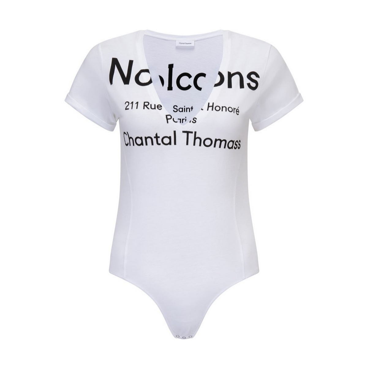 Боди с короткими рукавами с глубоким V-образным вырезом; выполнен из 100% хлопка. Застежка между ног на кнопках. Структурирующие швы, по бокам, сделают Ваш силуэт, визуально, еще более стройным.