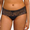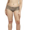 Трусы - классические со средне-заниженной посадкой. Передняя панель выпоолнена из кружева, в верхней части дополнена сеткой, задняя - из непрозрачной микрофибры.