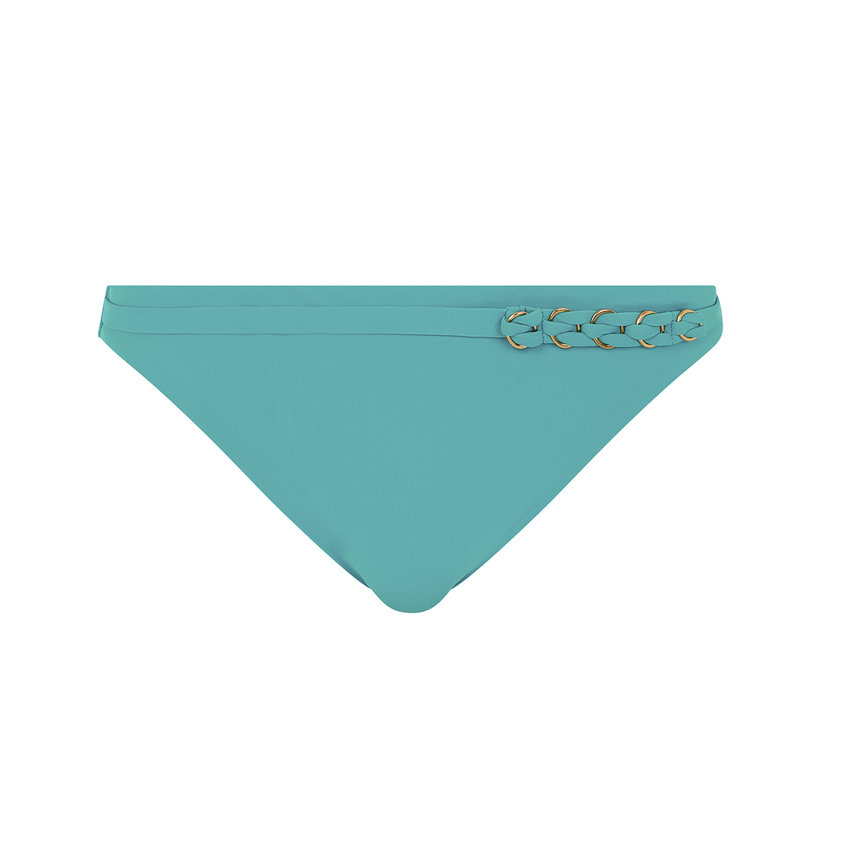 Трусы - классические со средне-заниженной посадкой. Полностью дублированы для избежания прозрачности. Передняя панель ассиметрично дополнена золотыми кольцами.