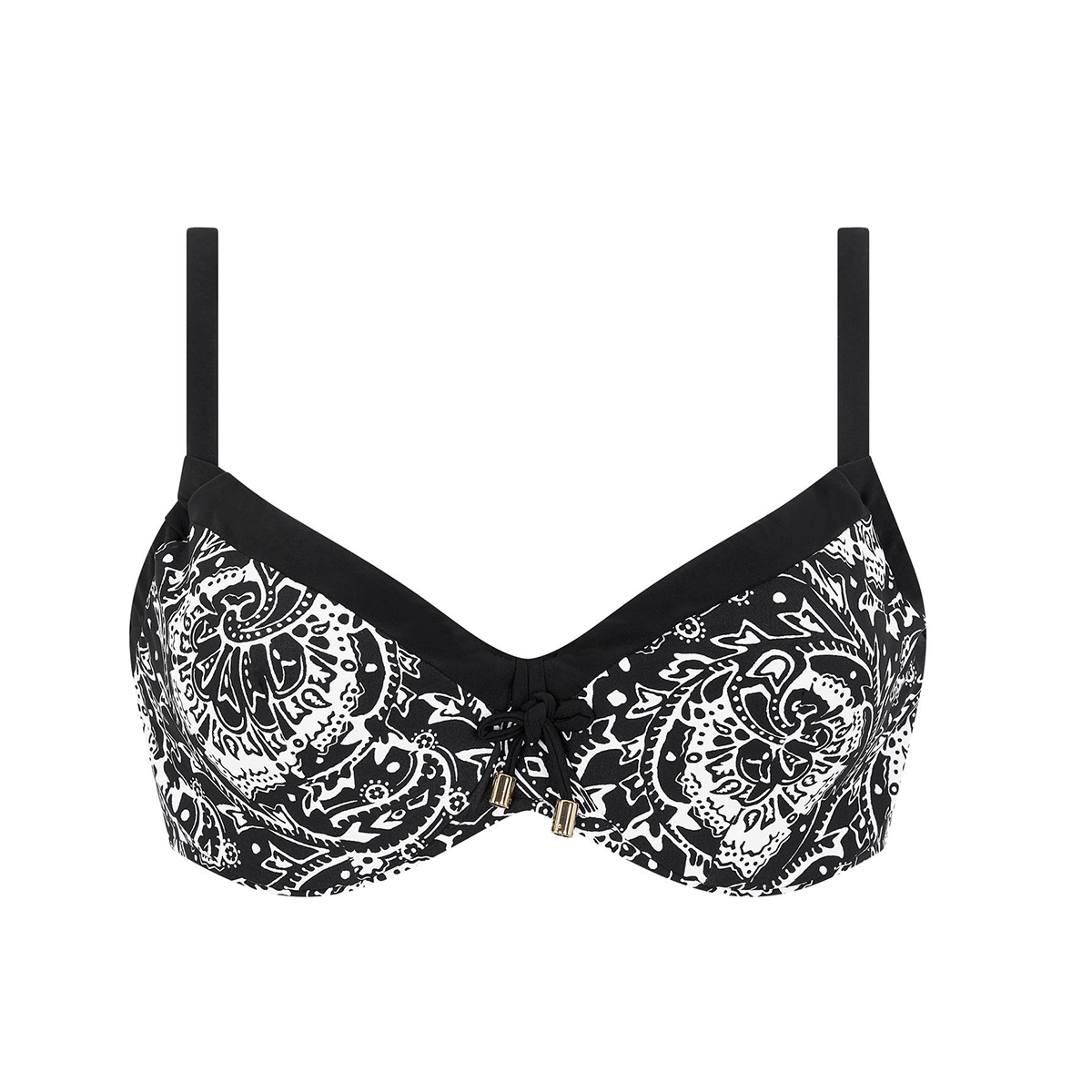 Классический бюстгальтер с мягкой формой чашек на косточках. Чашки выполнены из мягкой микрофибры с набивным рисунком с оригинальным цветочным орнаментом; с внутренней стороны дублированы для придания необходимой поддержки. Центральная панель дополнена декоративными завязками. Эластичные регулирующиеся бретели.