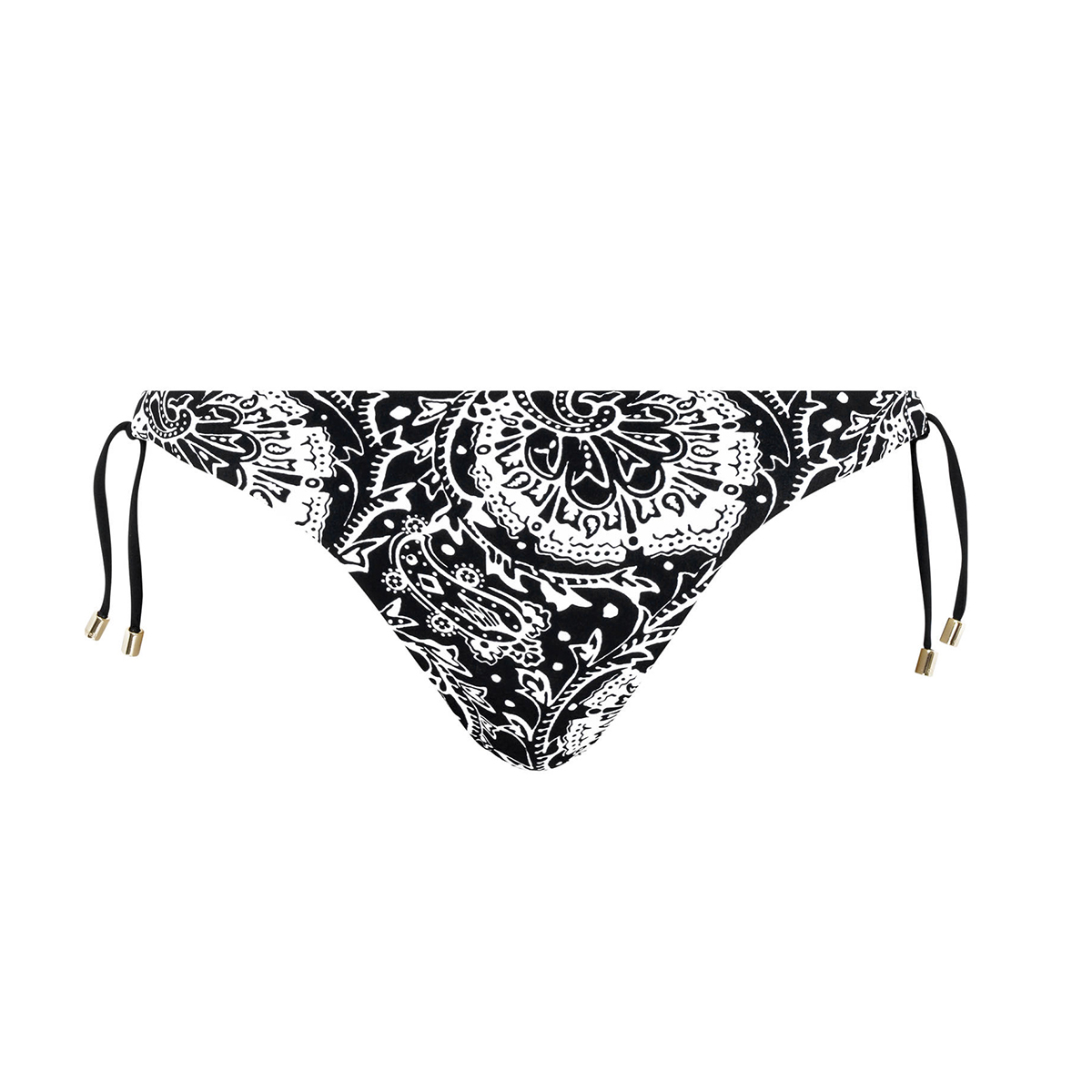Трусы - бикини с заниженной посадкой. Полностью выполнены из мягкой микрофибры с набивным рисунком с оригинальным цветочным орнаментом; полностью дублированы для избежания прозрачности. Боковые панели на завязках, что позволяет достичь идеальной посадки.