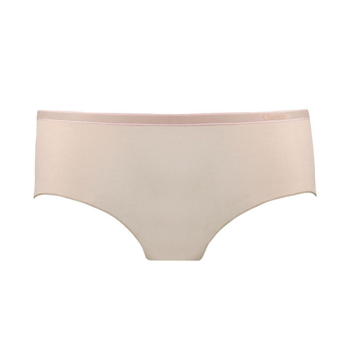 Закрытая форма трусиков с высокой боковиной, с невидимыми краями, благодаря применению технологии спаивания тканей; выполнена из мягкой эластичной микрофибры; спереди на поясе - контрастная отделка, справа - логотип "Chantelle".