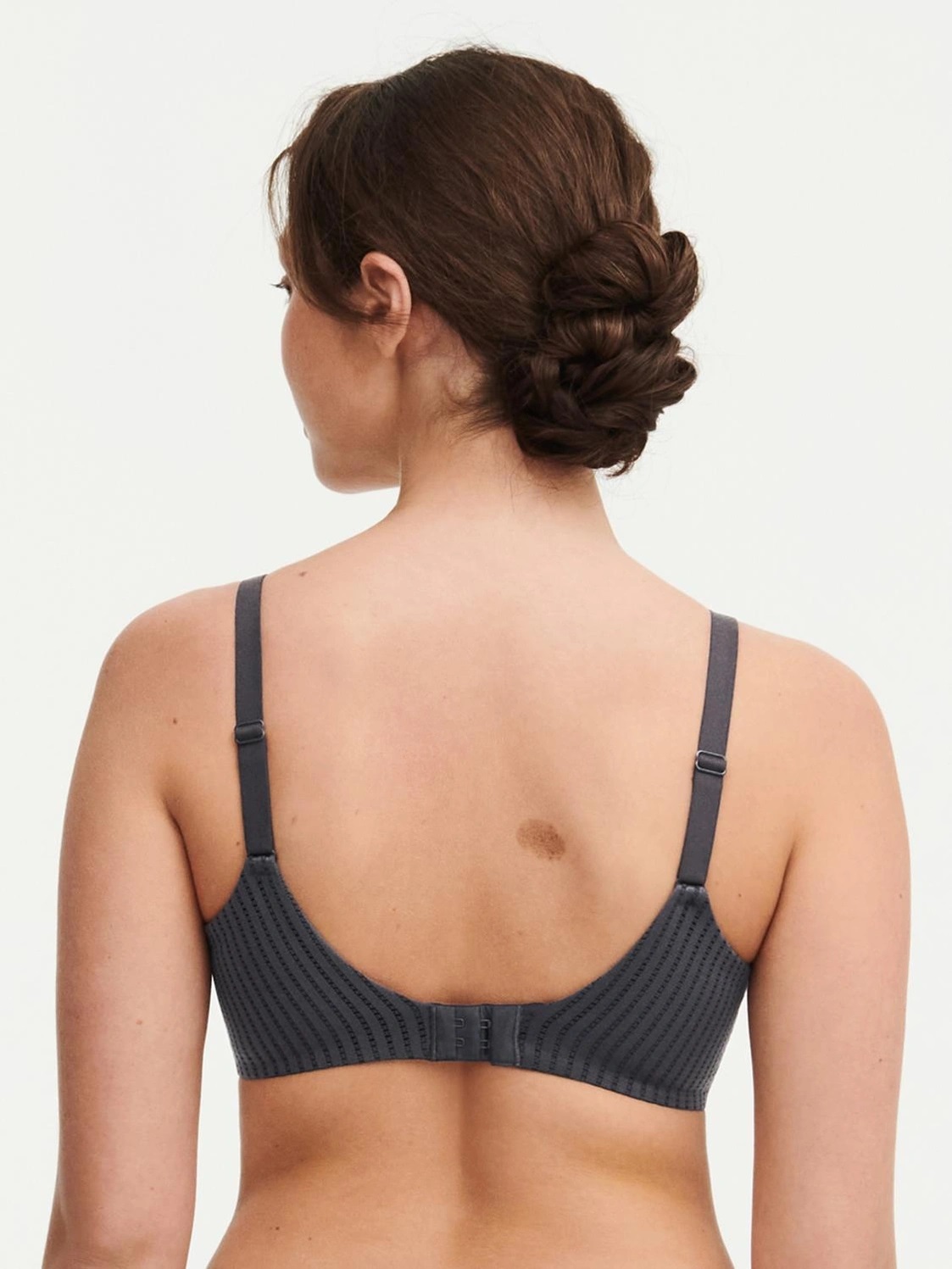 Бюстгальтер со слегка уплотненной формой чашек, которые выполнены из тонкого слоя мусса. Чашки покрыты перфорированной микрофиброй, в верхней части дополнены кружевом, которе плавно перетекает в бретели. Широкая центральная панель. Дублированные боковые панели. Балетная спинка - для сбалансированного распределения нагрузки. Регулирующиеся бретели.
