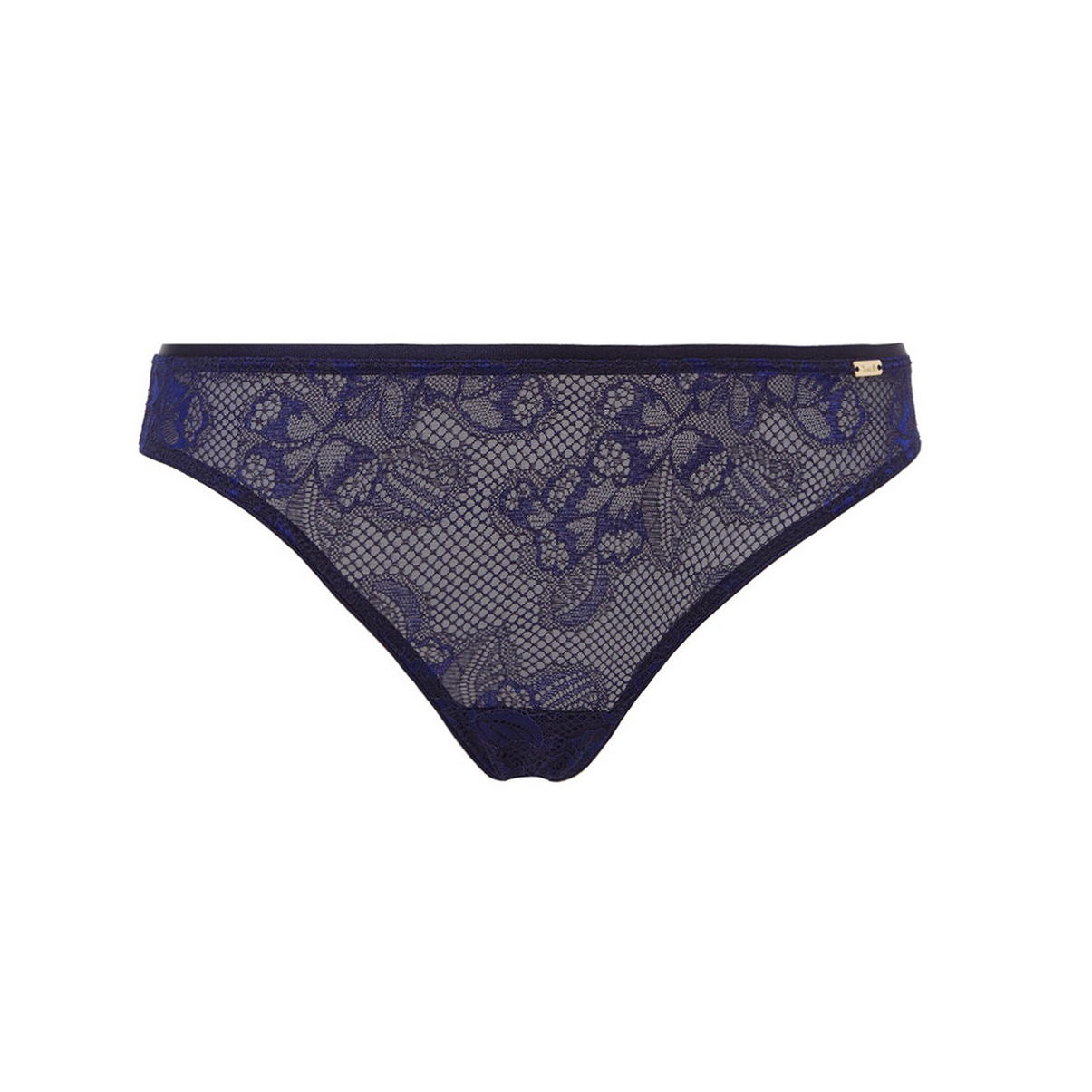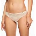 Классические полностью кружевные трусики заниженной посадки; передняя панель дублирована тюлем; задняя - кружевная, с волнистым краем и тюлевым треугольничком возле пояса; хлопковая ластовица.