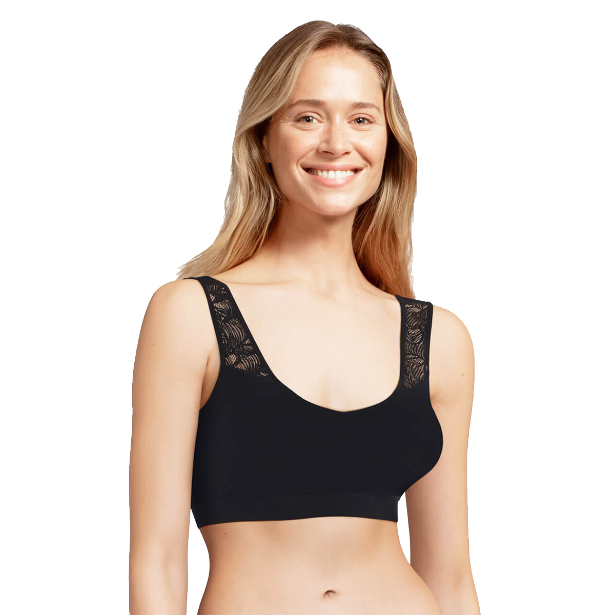Бесшовный бюстгальтер-топ. Без косточек. Выполнен из мягкого и эластичного материала, который обладает эффектом "второй кожи". Бюстгальтер оснащен интегрированными подушками. Комфорт и поддержка Вам гарантированы, несмотря, на отсутсвие косточек. Эта модель бюстгальтера разработана специально для того, чтобы следовать за движениями Вашего тела, но при этом оставаясь на месте на протяжении дня. Задняя панель из кружева.