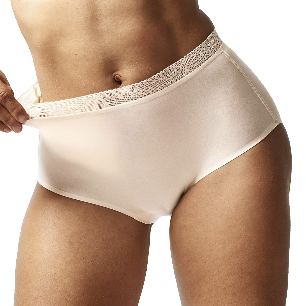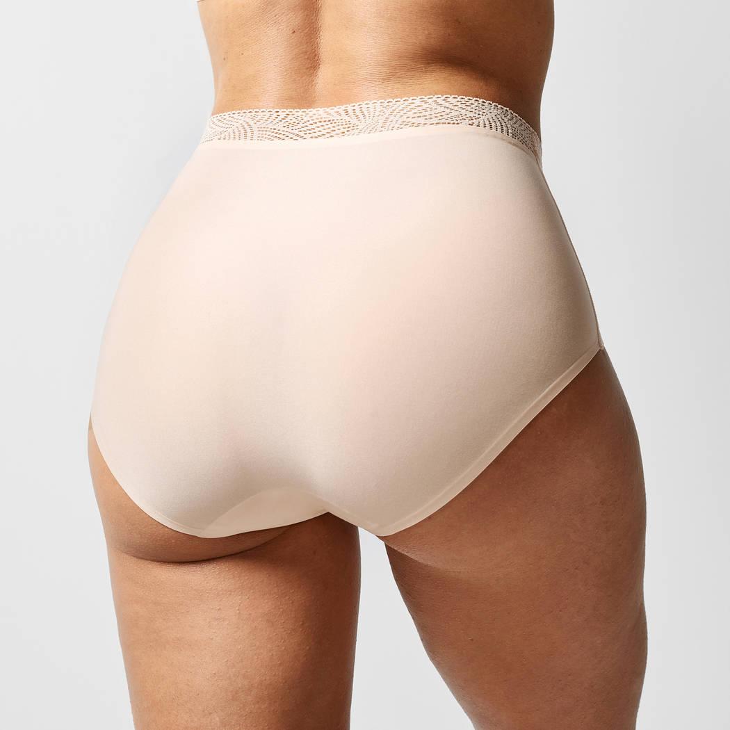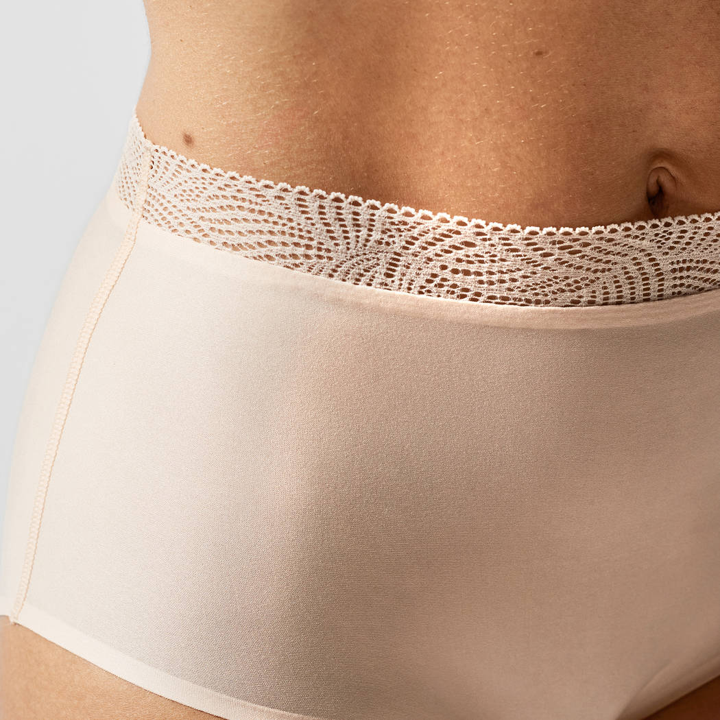 Трусы - с высокой талией. Для придания женственности пояс дополнен ультра плоским кружевом. Выполнены из "нежнейшей" эластичной микрофибры с эффектом "второй кожи". Трусы не ограничивают свободу Ваших движений и при этом остаются на месте. Бесшовные, с "запаянными" краями.