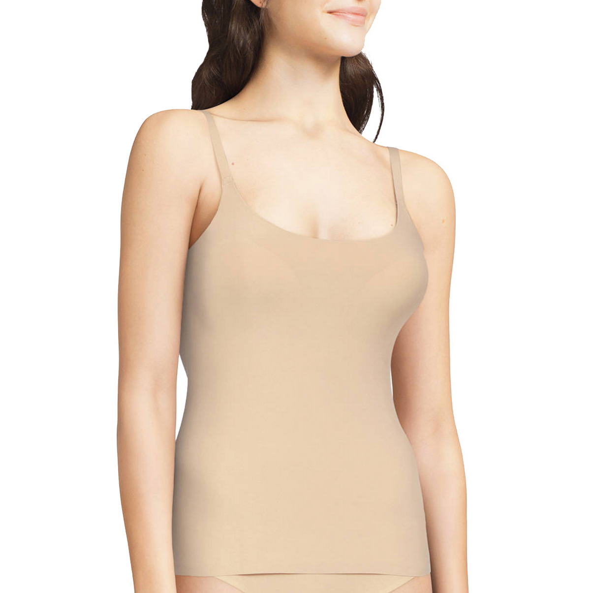 Майка на тонких регулирующихся бретелях с интегрированными подушками; выполнена из мягкого и эластичного материала, который обладает эффектом "второй кожи". Модель разработана специально для того, чтобы следовать за движениями Вашего тела, но при этом оставаясь на месте на протяжении дня. Регулирующиеся бретели можно перестегнуть крест-на-крест.