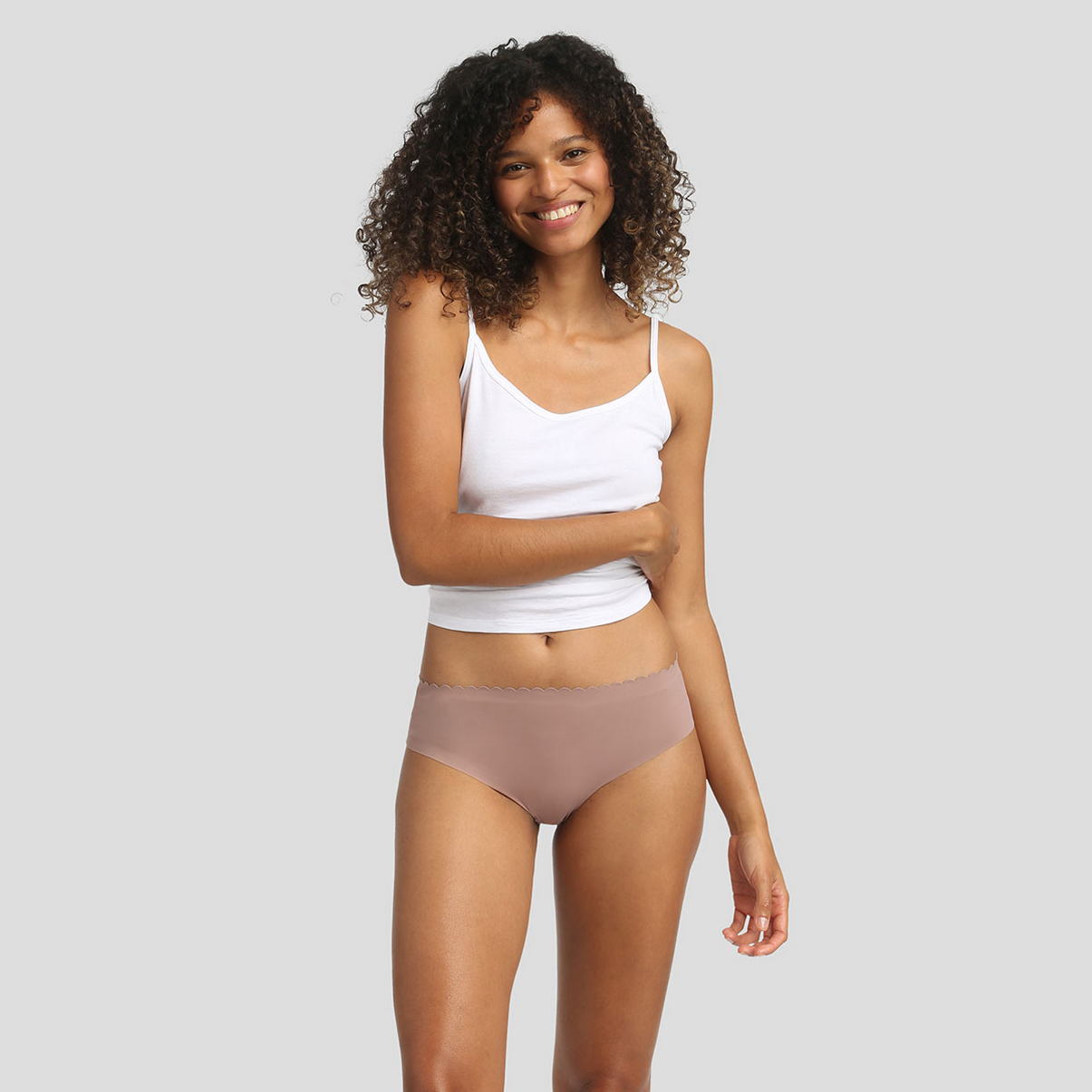 Трусики-хипстеры с заниженной талией и сильно вырезанной задней панелью. Плоская отделка края и плоские швы. Абсолютно гладкие и невидимые под одеждой. Хлопковая ластовица. Комфорт в течение всего дня.
