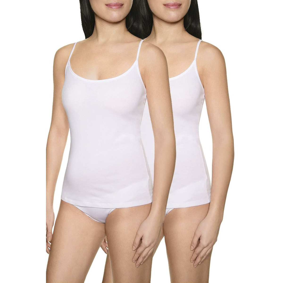 Майки из эластичного хлопка на тонких стрейчевых бретельках. Мягкая ткань и деликатная отделка. Две штуки в упаковке.