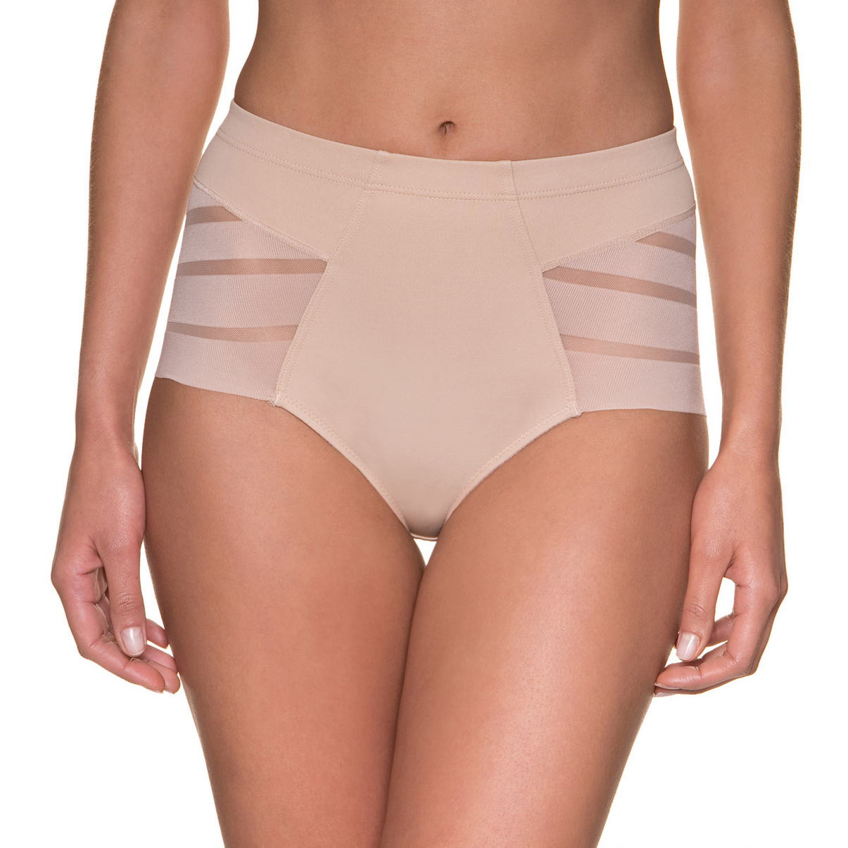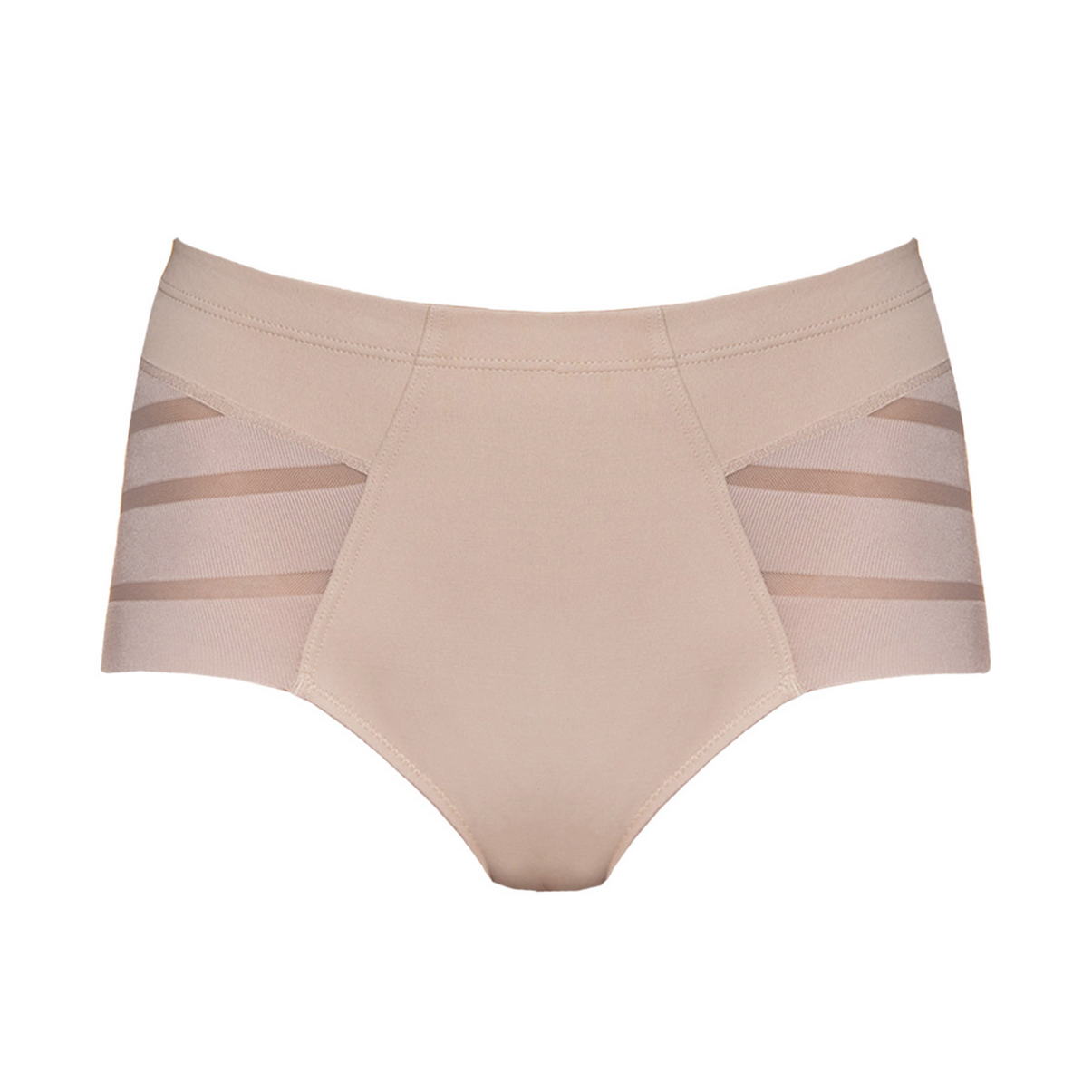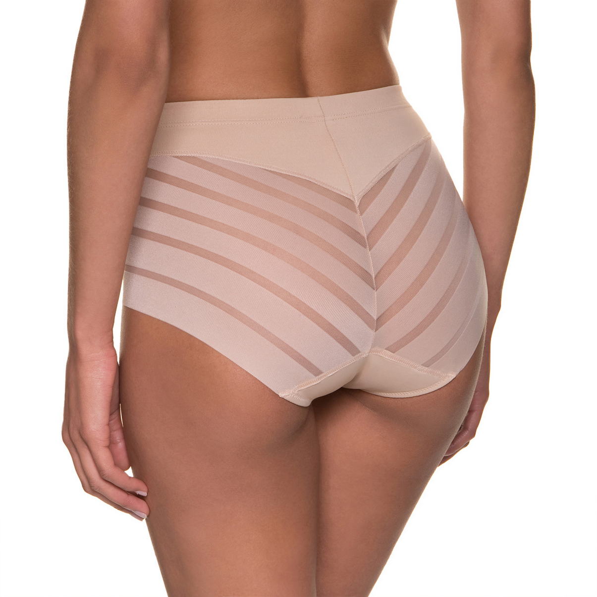 Гладкая, невидимая под одеждой, линия трусов из микрофибры с моделирующим эффектом. Вставки из тюля придают изделиям облегченный и элегантный вид.