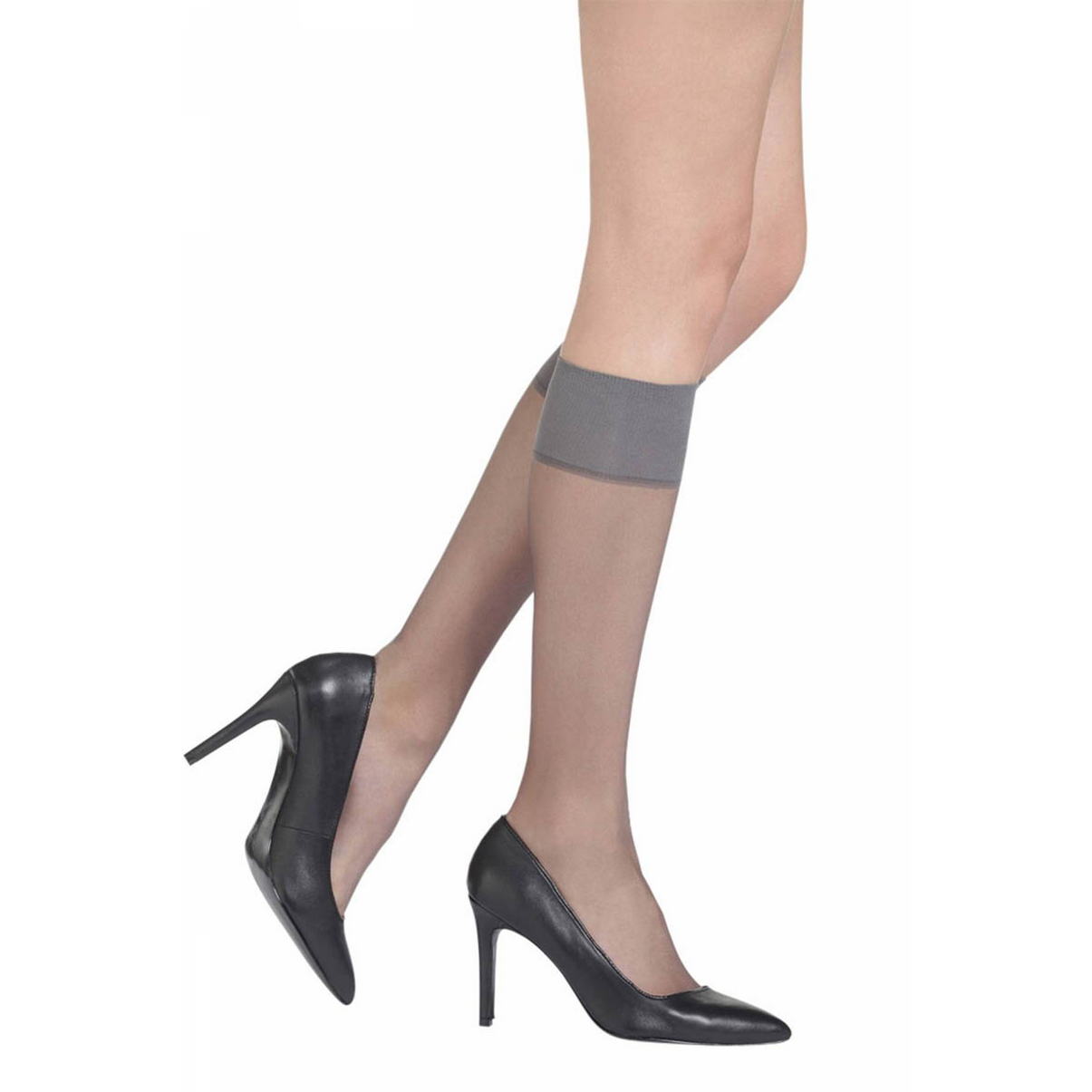 Гольфы 15 ден две штуки в упаковке с широкой резинкой для лучшей "поддержки". Очень прозрачные.