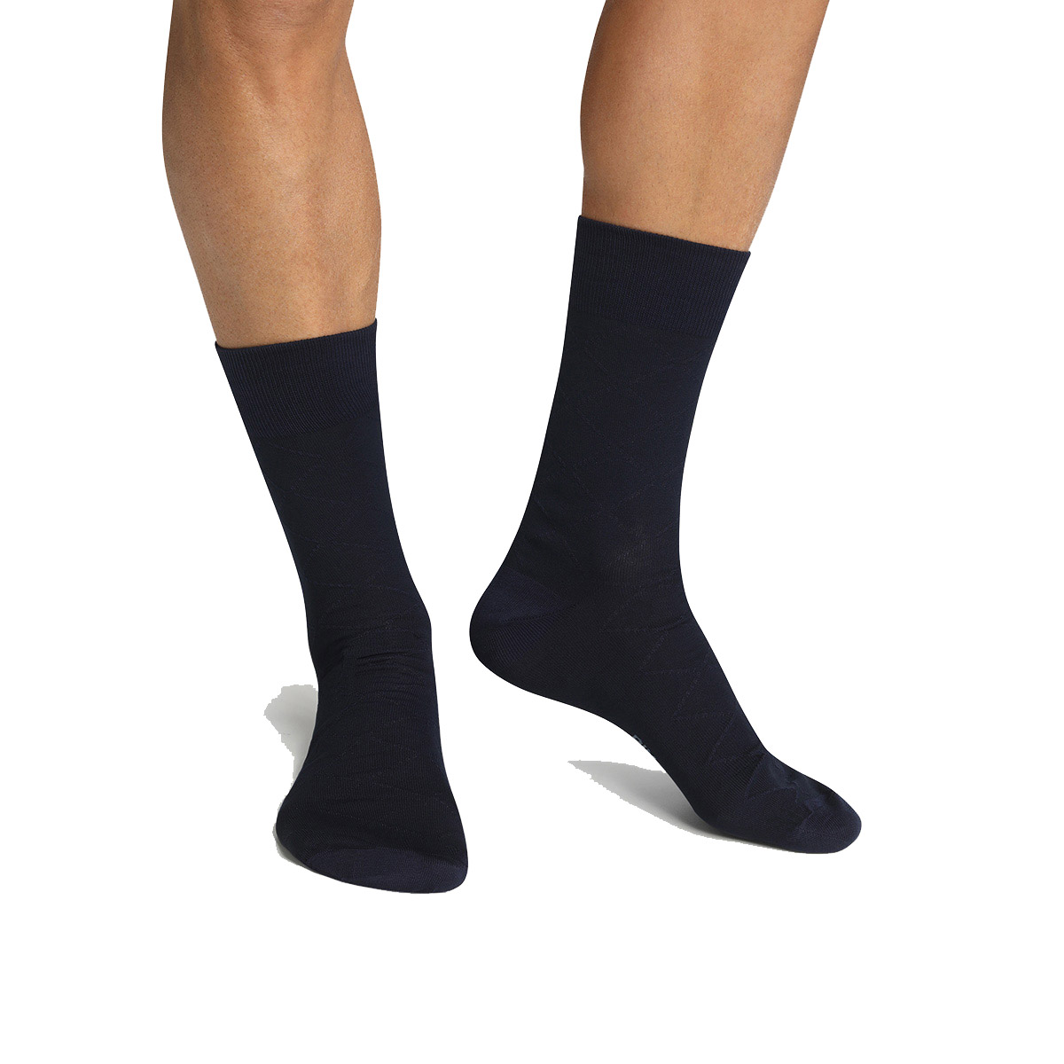 Носки выполненные из мерсерезированного хлопка с шелковистой и блестящей поверхностью. Вывязанные ромбы. Широкая эластичная резинка позволит избежать «сползания». Уплотненные носки и пятки.