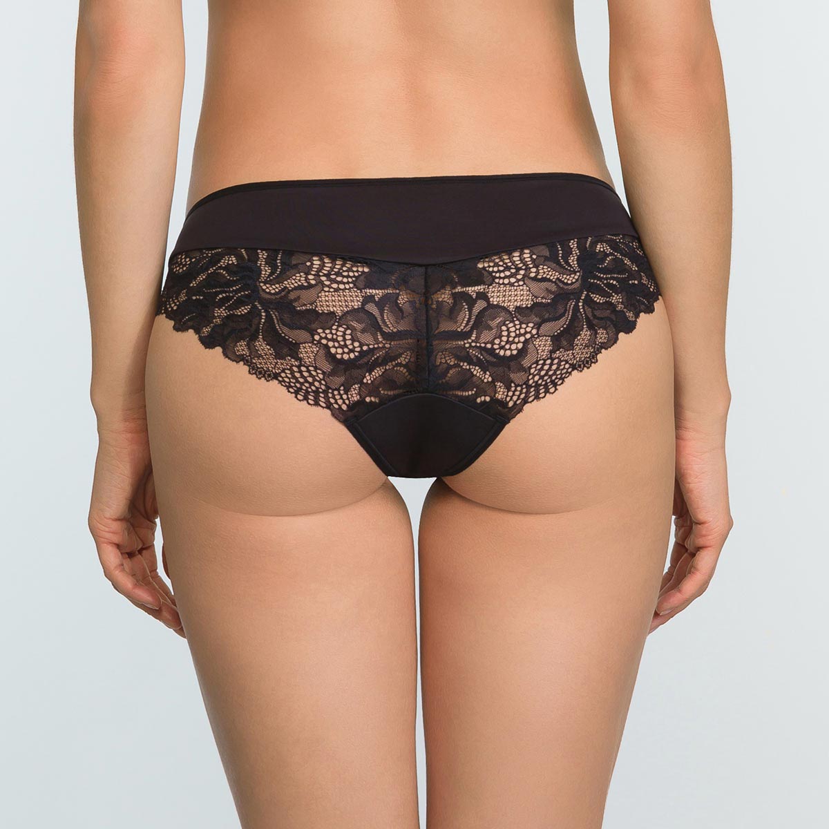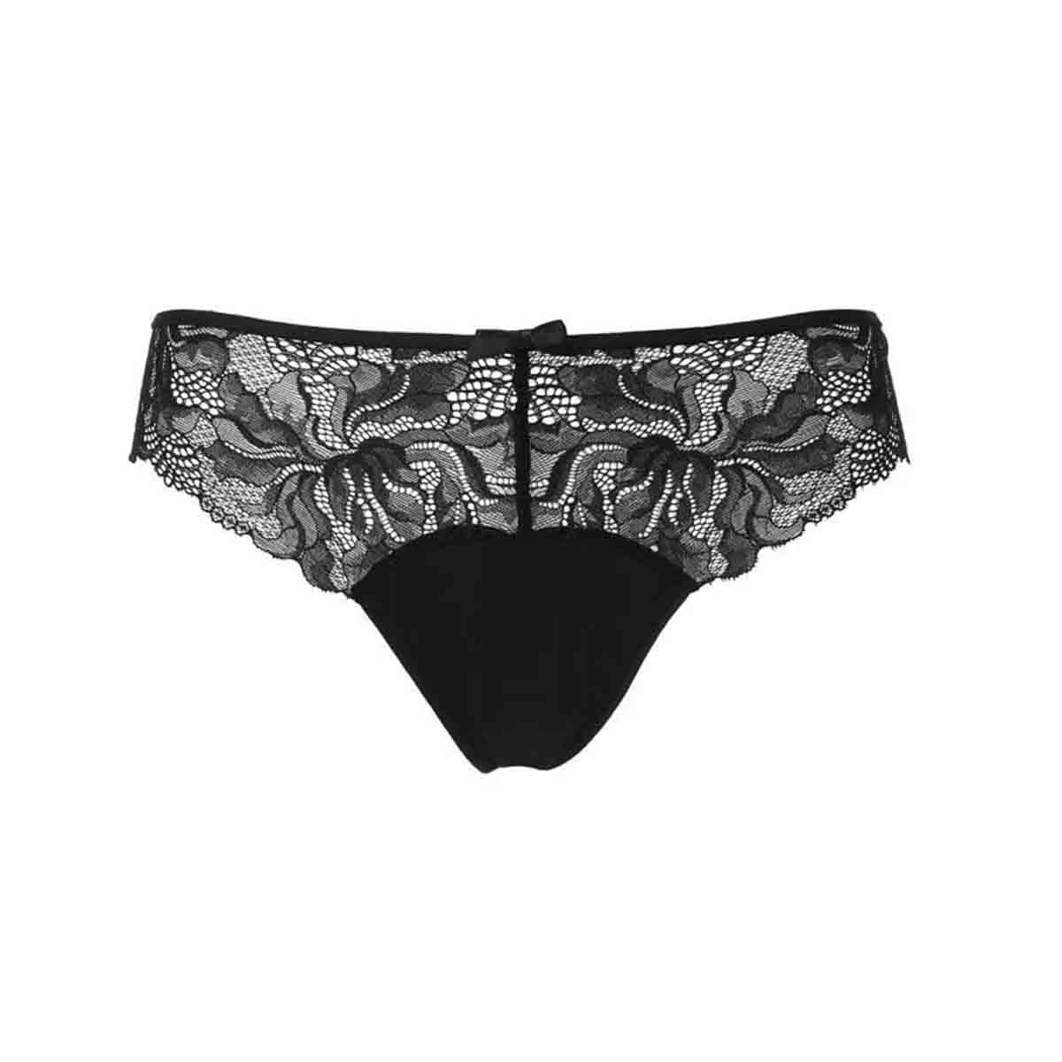 Трусы-классические со средней посадкой. Практически, полностью выполнены из "плоского" кружева с цветочным орнаментом. На задней панели в верхней части - вставка из микрофибры, на передней - разместился небольшой бантик.