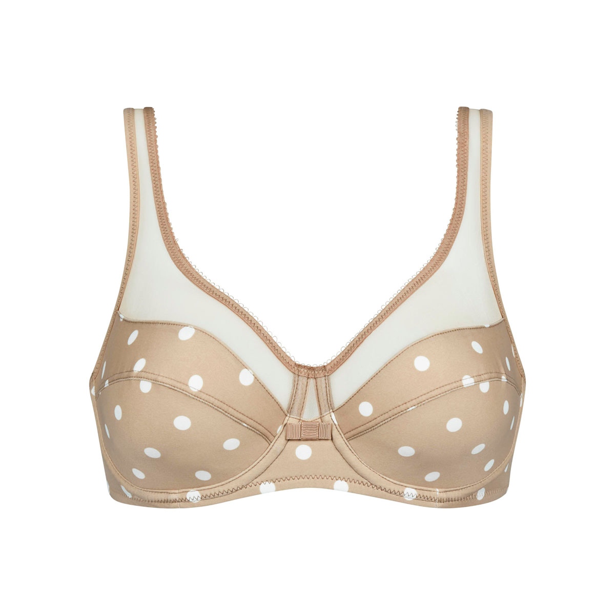 Бюстгальтер классический с мягкой формой чашек на косточках, с цельнокройными широкими бретелями и дублированными с внутренней стороны чашками обеспечит безупречную поддержку. Боковые панели усилены мягкими косточками. Овальная спинка уменьшает нагрузку на позвоночник. Горизонтальный шов на чашке слегка округляет форму груди. Вставки из тюля придают женственность.