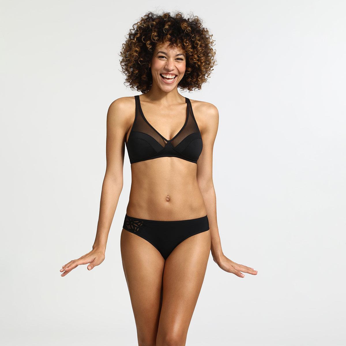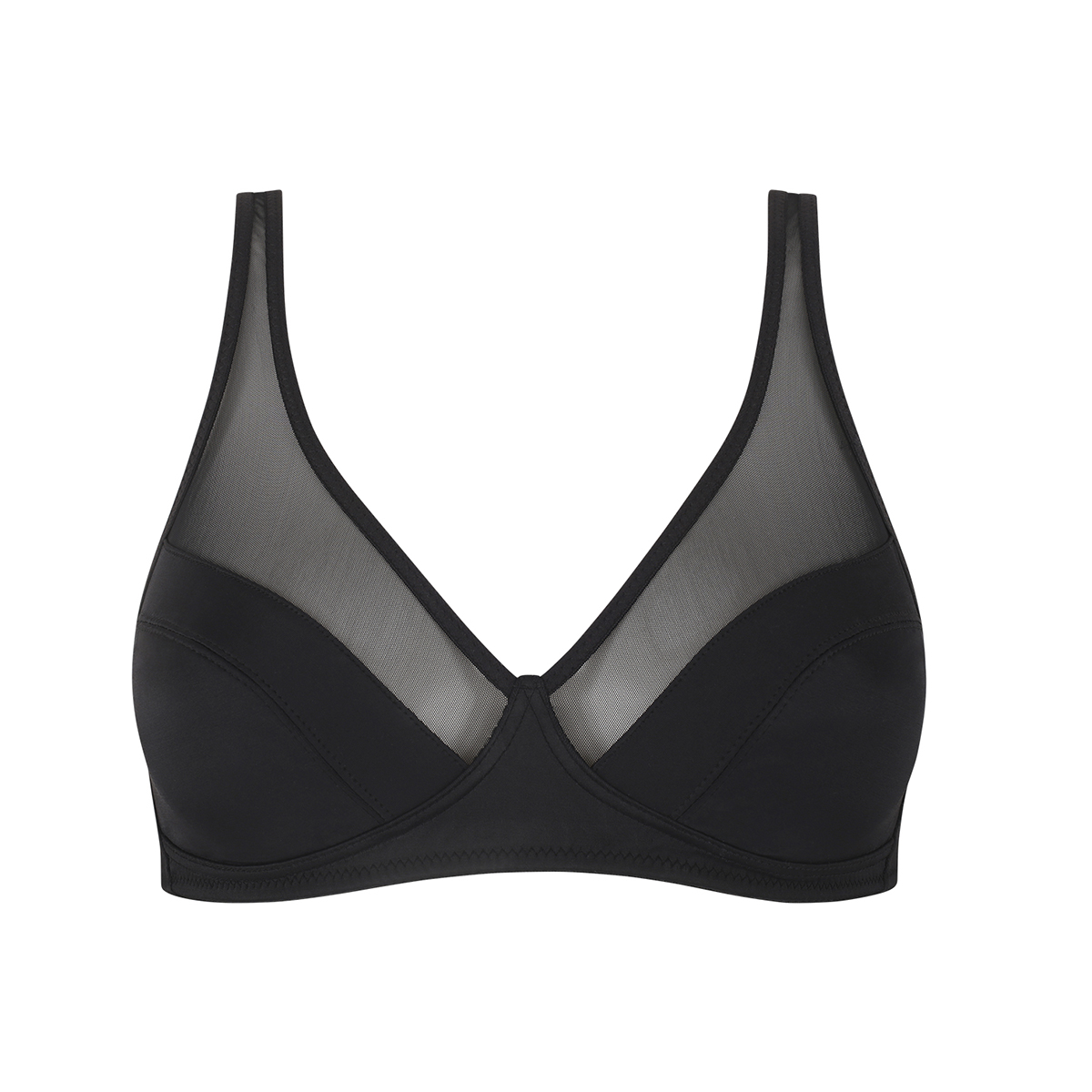Бюстгальтер - треугольник с мягкой формой чашек без косточек. Чашки выполнены из микрофибры, в нижней части с внутренней стороны дублированы тюлем для придания необходимой поддержки; верхняя часть дополнена тюлем для придания женственности. Также для придания необходимой поддержки - широкие регулирующиеся бретели и боковые косточки. Балетная спинка поможет правильно распределить нагрузку.