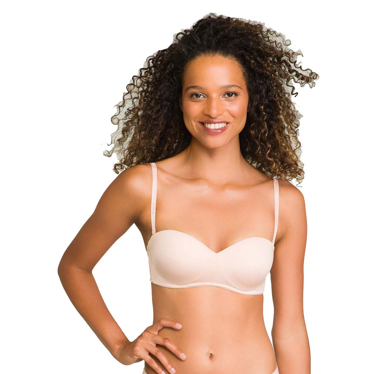 Бюстгальтер-бандо с плотной формой чашек с прослойкой из мусса без косточек. Отстегивающиеся регулирующиеся бретели. Боковые косточки для придания необходимой поддержки. Бюстгальтер оснащен силиконовой дорожкой: центральнпя панель - по-нижнему краю, боковые панели - по верхнему и нижнему краю.