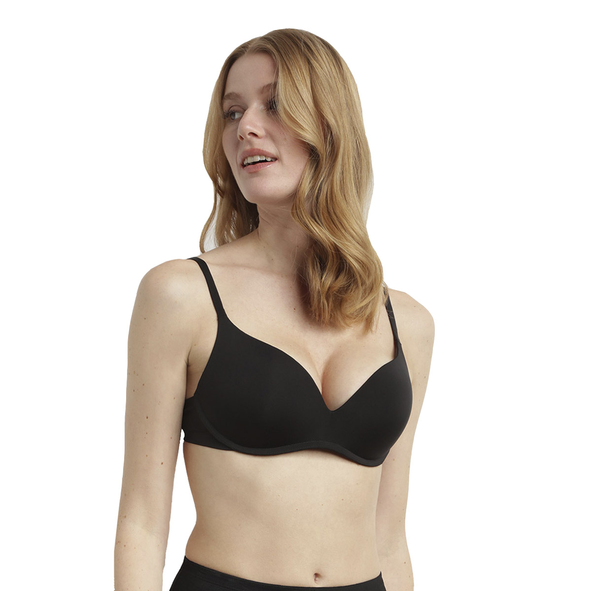Гладкий бюстгальтер с эффектом "Пуш ап" без косточек. Эффект достигается благодаря наполнителю из геля внутри формованных чашек бюстгальтера. Бюстгальтер - бесшовный, что делает его невидимым под одеждой. Боковые панели дублированы.
