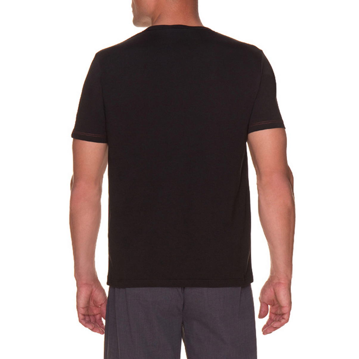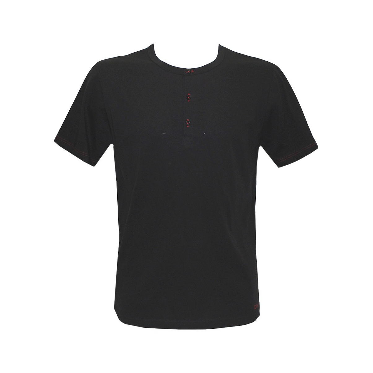 Футболка с коротким рукавом черного цвета. Комфортное полотно из 100% хлопка. Контрастные красные петли на планке и красная строчка. Элегантный вид и безупречный стиль.