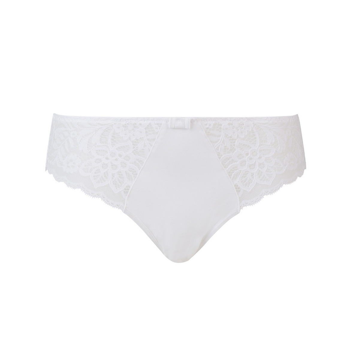 Трусы-бикини со средне-заниженной посадкой. Передняя панель выполнена из мягкой микрофибры, боковые и задняя панели - из плоского кружева с цветочным орнаментом.