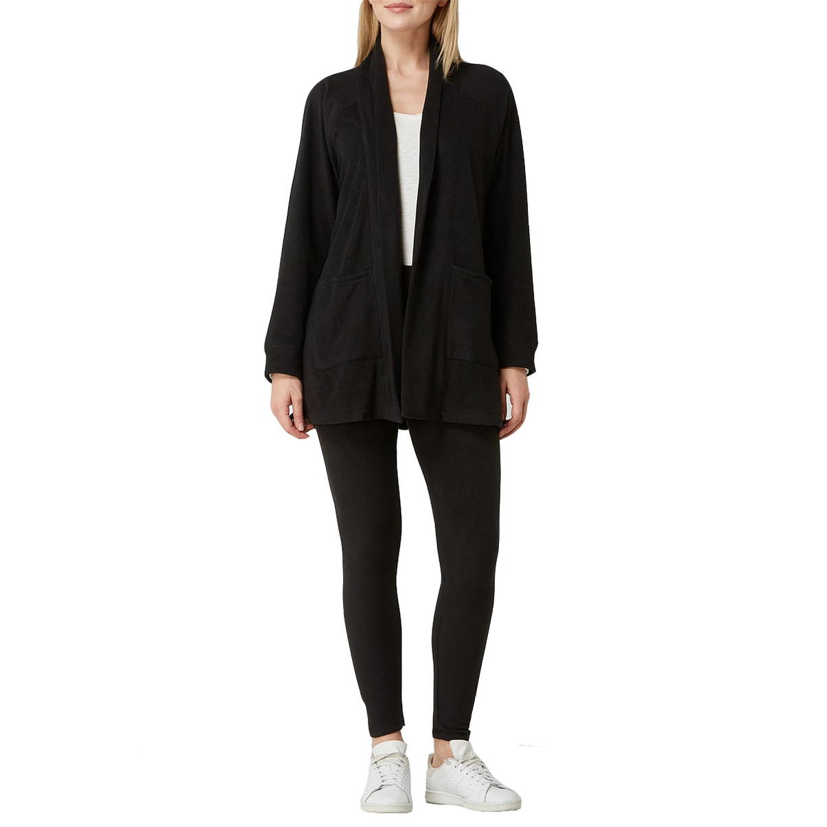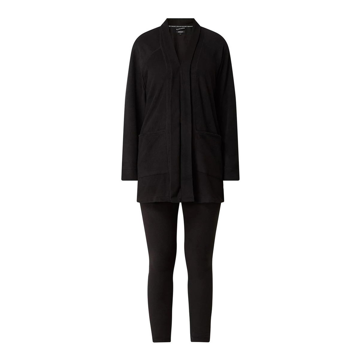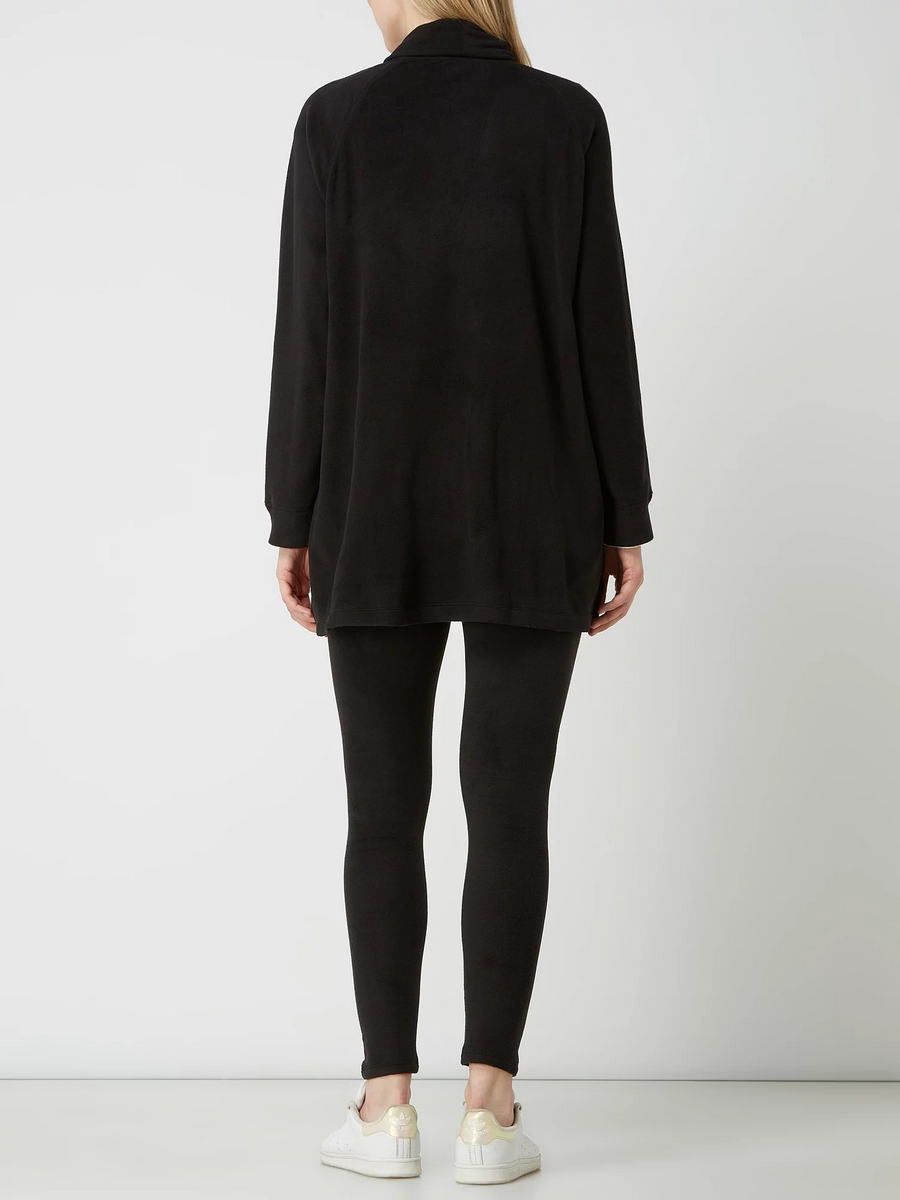 Костюм: кардиган и леггинсы, выполнные из флиса. Кардиган свободного кроя, с небольшими разрезами по бокам, с длинными рукавами и карманами. Леггинсы, облегающего фасона, без карманов, с эластичным поясом.