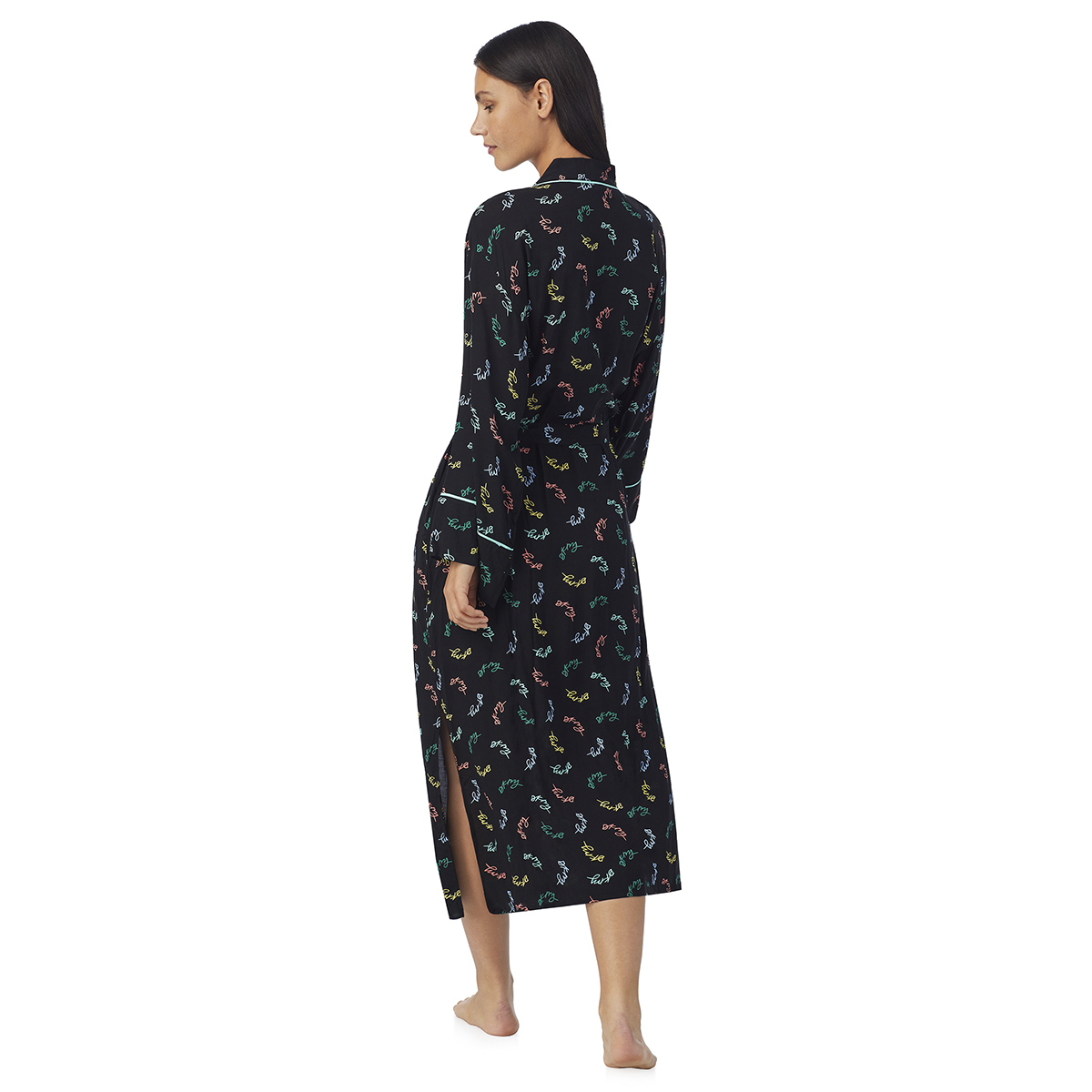 Халат свободного кроя, с длинными рукавами, на поясе, с боковми карманами. Выполнен из "струящейся" вискозы.