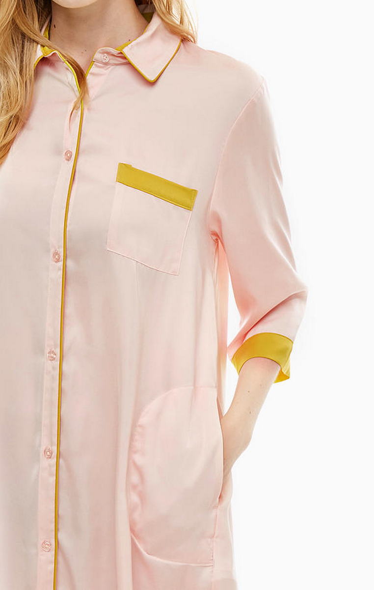 Удлиненная рубашка в мужском стиле на пуговицах. По бокам разрезы. Задняя панель удлиненная. Боковые карманы и крамашек на груди.