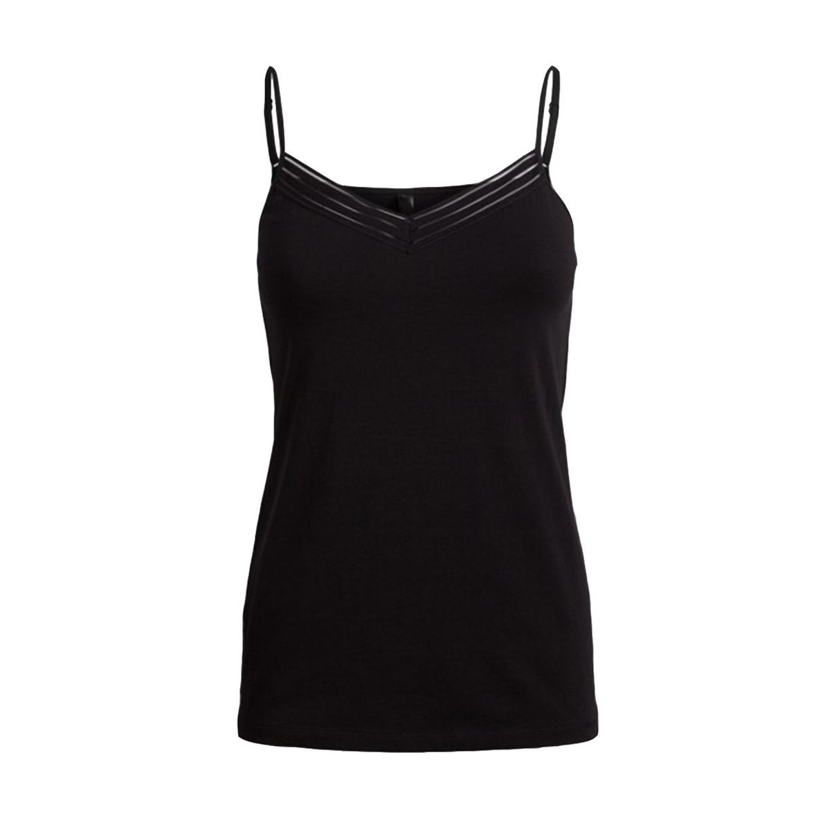 Майка на тонких регулирующихся бретелях. Верхний край передней панели декорирован. Выполнена из мягкого хлопка высокого качества.