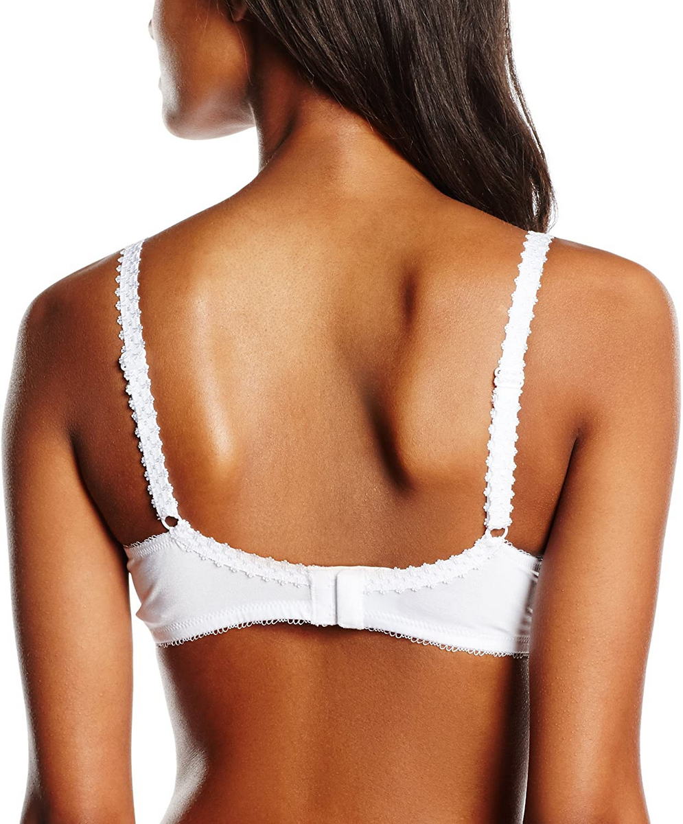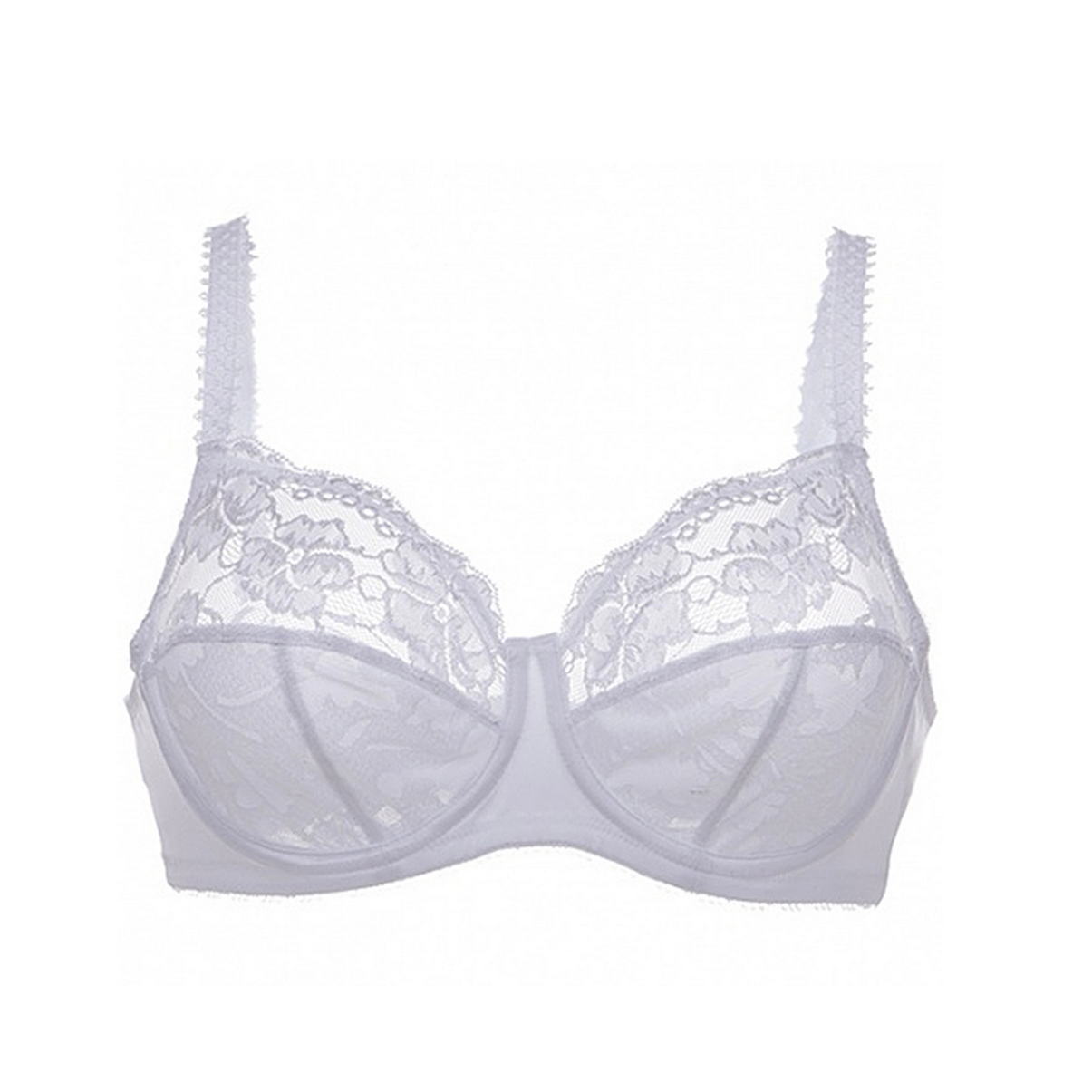 Бюстгальтер - классический на косточках с мягкой закрытой формой чашек. Чашки выполнены из кружева с цветочным орнаментом, с внутренней стороны дублированы тюлем для придания необходимой поддеркжи. Регулирующиеся декоративные бретели, для больших размеров, оснащены в области плеч "подушками" для избежания давления.