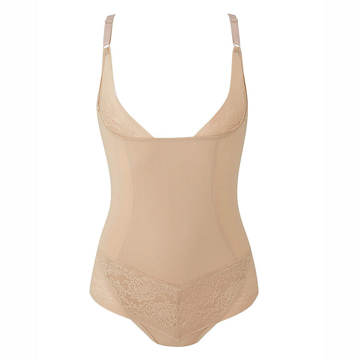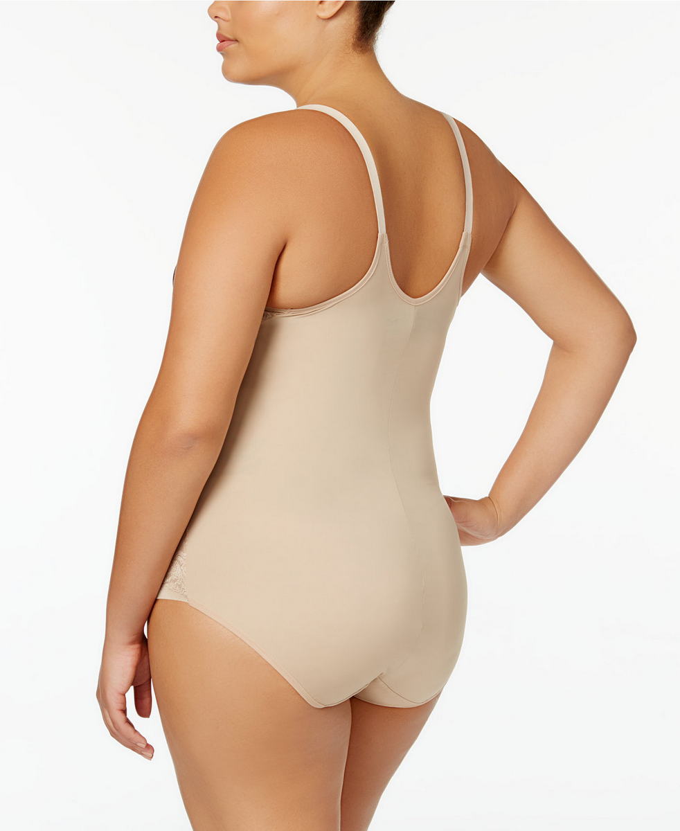 Боди предназначен для визуальной коррекции области талии и животика. Открытая область груди позволяет носить Ваш бюстгальтер. Выполнен из приятной микрофибры и декорирован тесьмой из плоского кружева по нижнему краю трусиков. Передняя панель дублирована для достижения необходимой коррекции. Застежка между ног на крючках. Хлопковая ластовица. Регулирующиеся бретели.