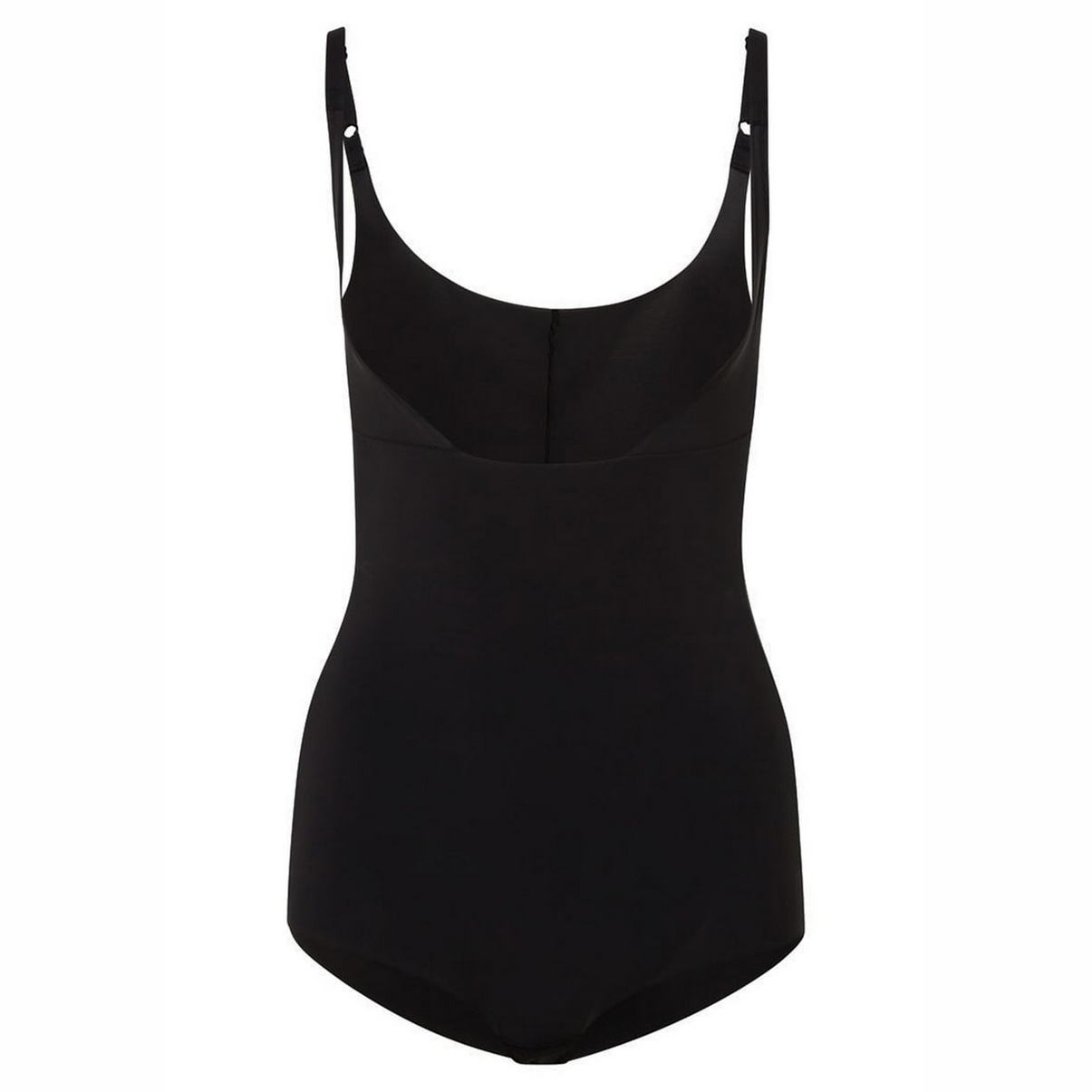 Боди выполнен из "невесомой" микрофибры, невидимой под одеждой. Открытая область груди позволяет носить Ваш бюстгальтер. Передняя панель дублирована тканью для легкой коррекции. Закрытая спинка позволит скрыть "шероховатости". Регулирующиеся бретели. "Необработанные" края по линии ног и по линии спины. Застежка между ног на крючках.