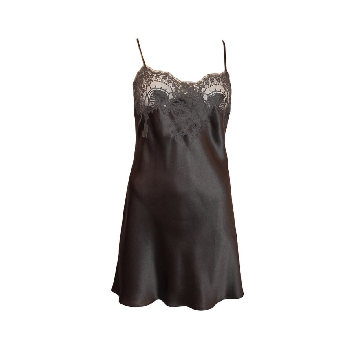 Сорочка на тонких бретелях, которые регулируются. Область декольте кружевная. Изделие выполнено из нежнейшего шелка и лучшего кружева "Кале".