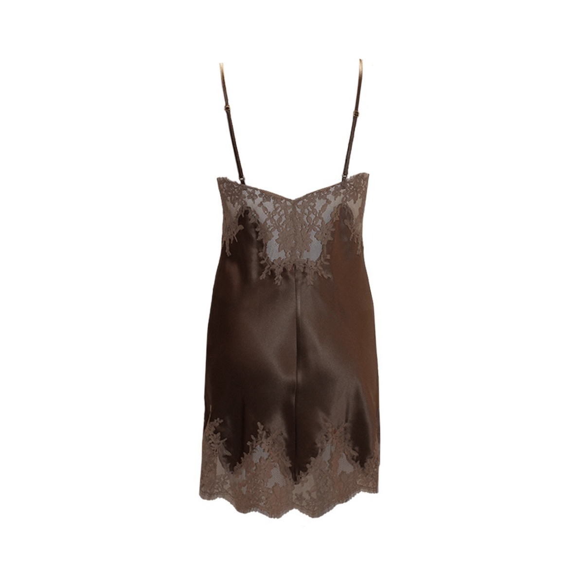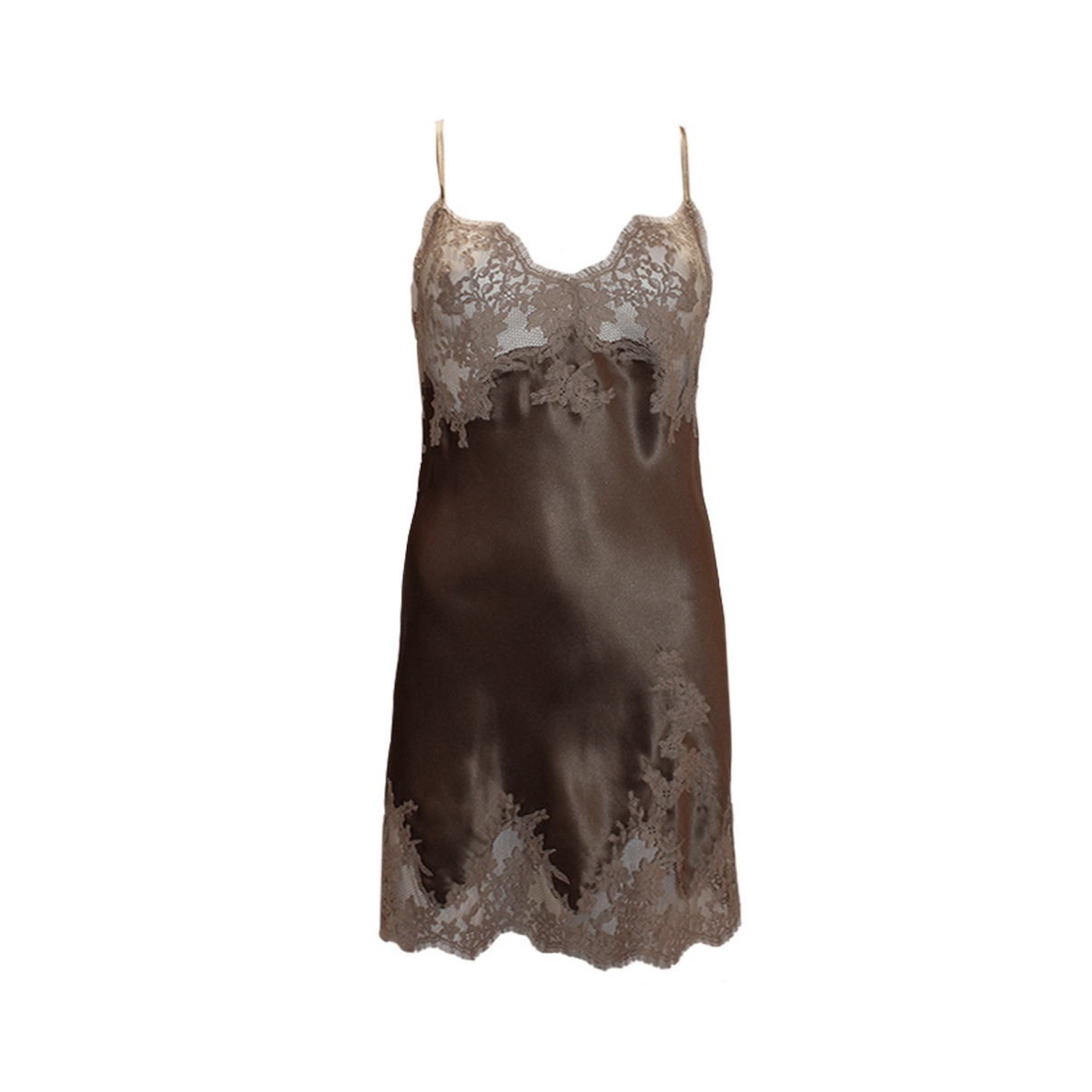 Сорочка на тонких бретелях, которые регулируются. Область декольте кружевная, низ сорочки также обрамляет кружево, приталенный фасон. Изделие выполнено из нежнейшего шелка и лучшего кружева "Кале".