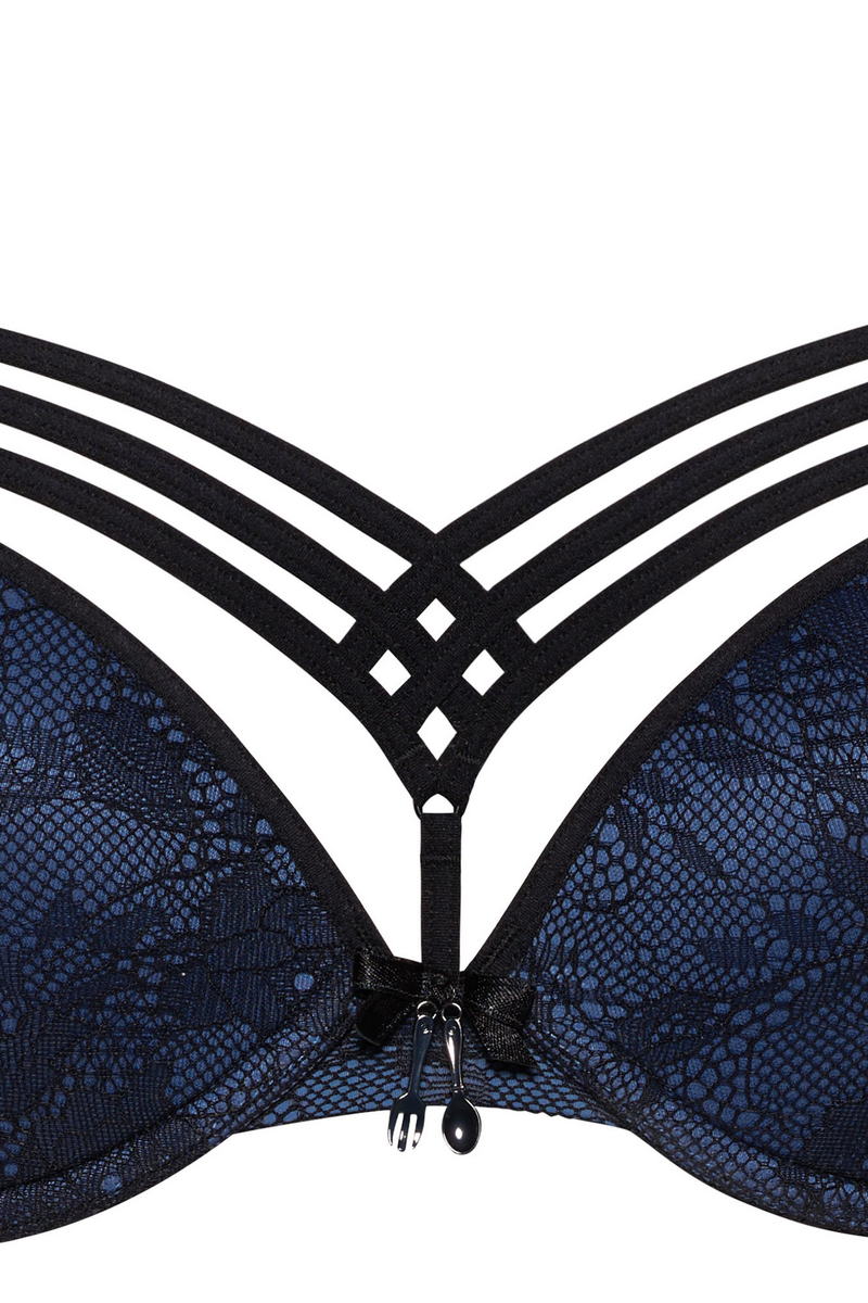 Бюстгальтер с плотной чашкой и глубоким вырезом; благодаря близко расположенным друг к другу косточкам бюстгальтер слегка приподнимает и сдвигает грудь к центру; очень откровенная и сексуальная форма.