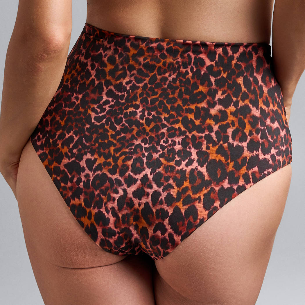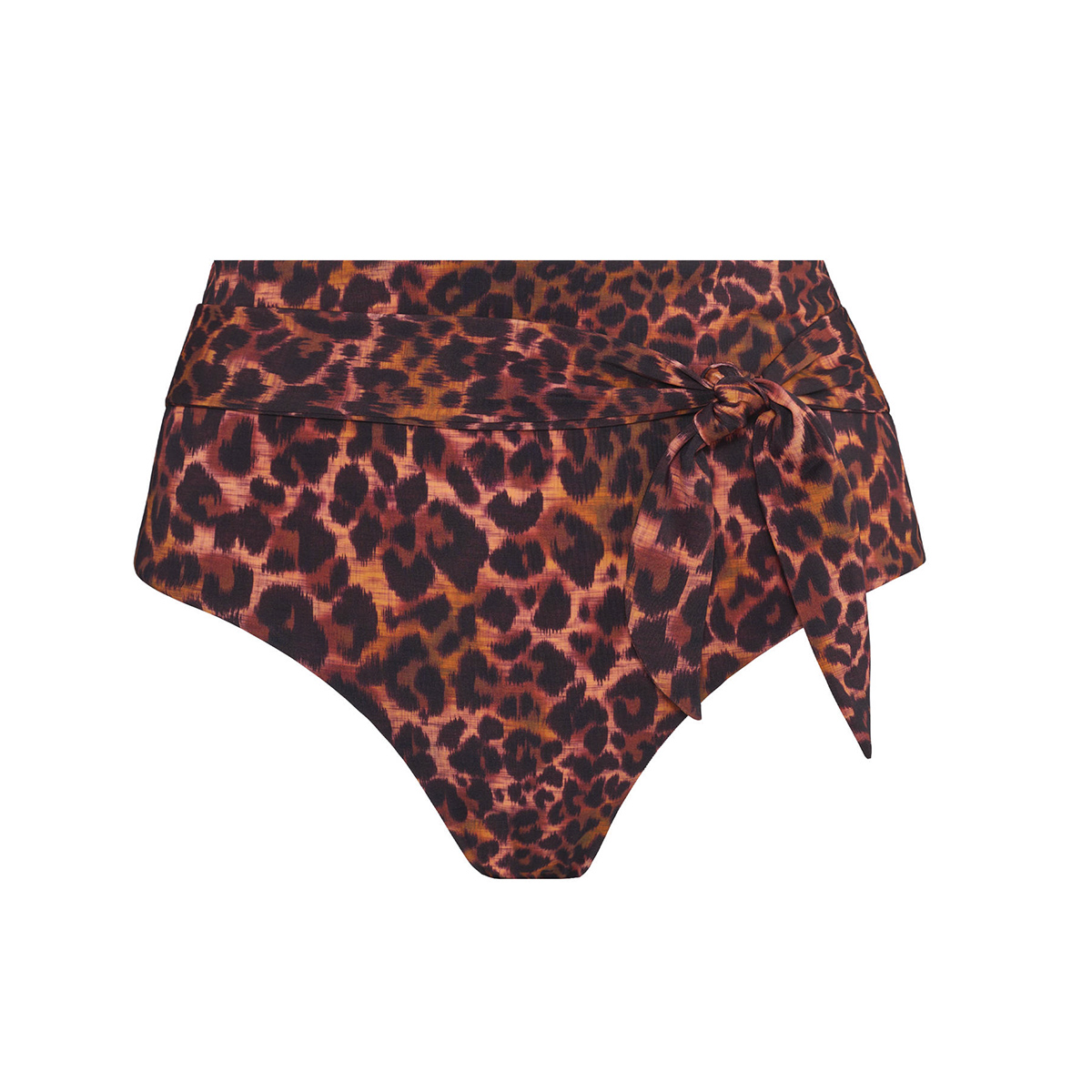 «Подвинься, Тарзан: Королева джунглей Джейн хочет веселиться! Сделайте несколько безумных движений на пляже или за его пределами в этой удивительной и стильной коллекции! Вдохновленная уличными танцами и их африканскими корнями, я разработала идеальный леопардовый принт в теплых коричнево-оранжевых тонах и напечатала его цифровым способом на переработанном полиамиде. Я также добавила несколько оригинальных форм: ультра – сексуальный топ и цельный купальник с асимметричными бретелями оснащены дополнительными бретелями – для экстра поддержки! Все изделия коллекции дополнены декоративными узелками. А Вы любите узелки?» Принт, нанесенный цифровым способом - более экологичен, так как позволяет сэкономить до 60 литров воды.