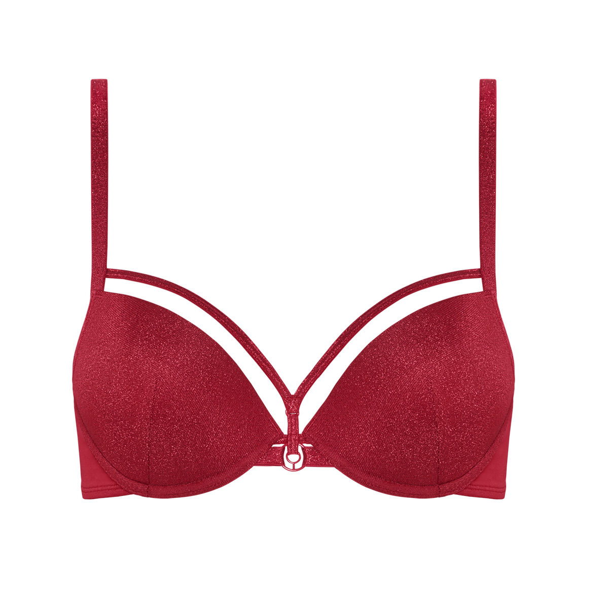Пуш-ап с плотной чашкой; очень глубокий и откровенный вырез; благодаря маленьким вкладышам в чашках и близко расположенным друг к другу косточкам он слегка приподнимает и сдвигает грудь к центру; очень откровенная и сексуальная форма.