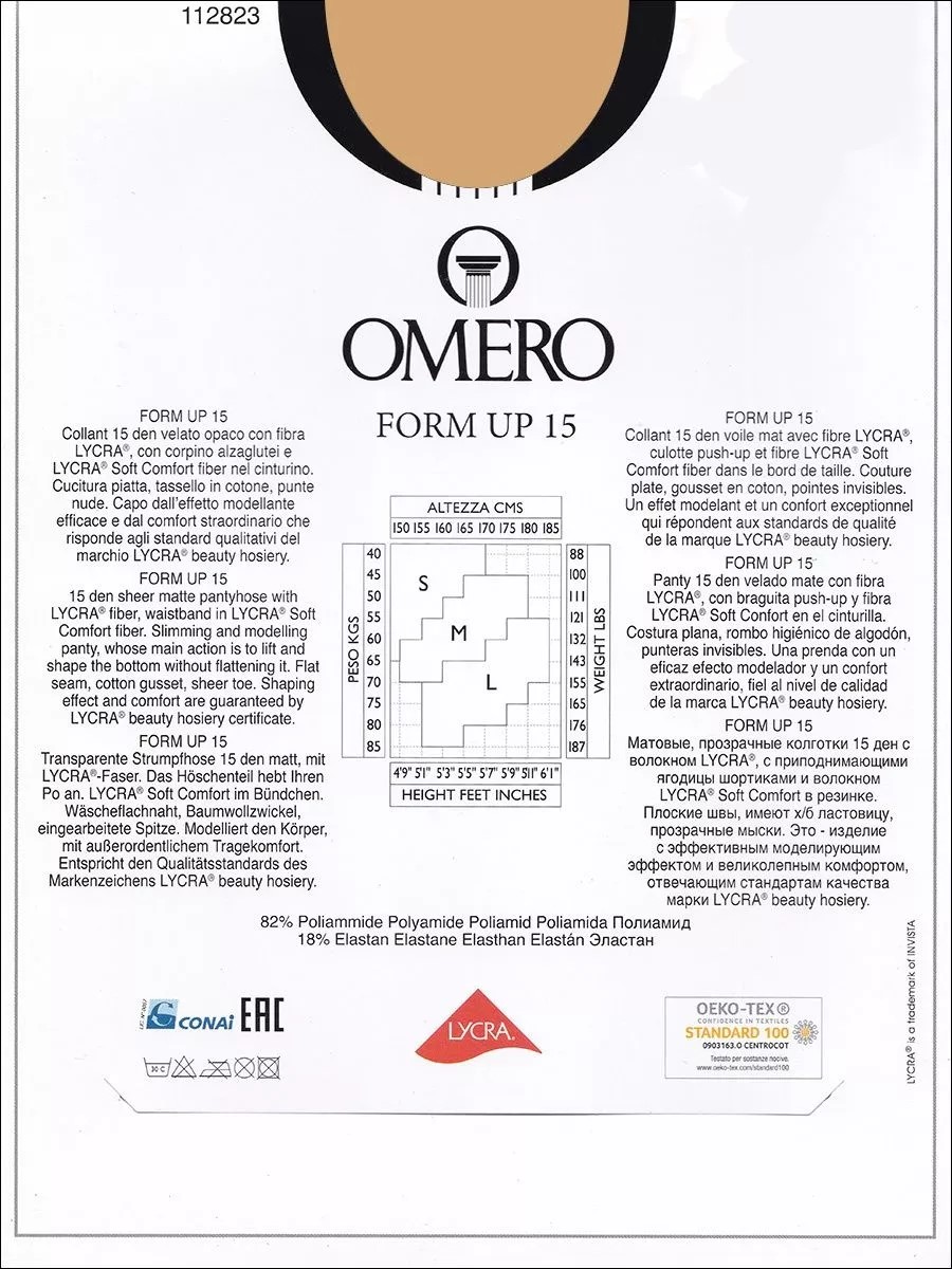Колготы 15 ден с обработкой "LYCRA 3D" волокна двойного кручения, матовые и плотные, с приподнимающими ягодицы шортиками и волокном "LYCRA Soft Comfort fiber" в резинке. Плоские швы, имеют х/б ластовицу. Это - изделие с эффективным моделирующим эффектом и великолепным комфортом
