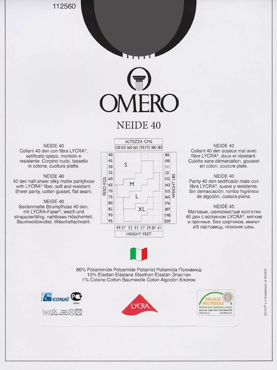 Матовые, прозрачные колготки 40 ден, без шортиков, имеют х/б ластовицу,плоские швы.Благодаря использованию волокна LYCRA® и Tactel Duo опасность образования затяжек снижается до минимума.